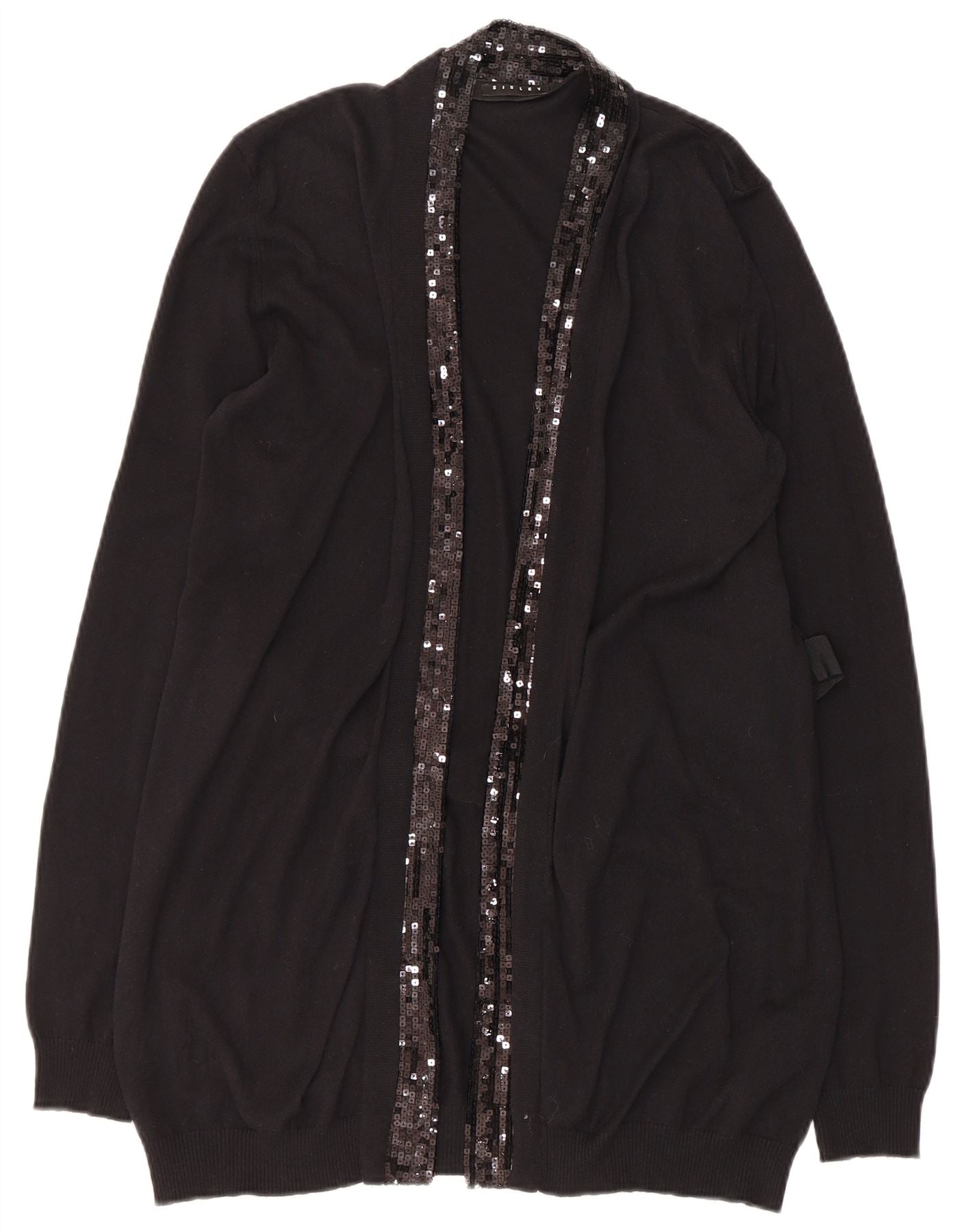 Sweter damski Sisley z otwartym kardiganem UK 14, duży, czarny, bawełniany
