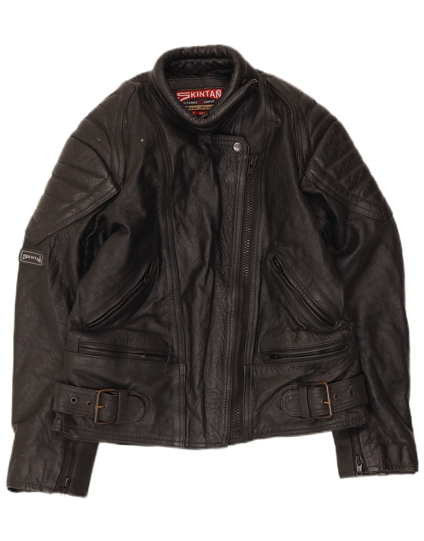 SKINTAN Damska skórzana kurtka racer UK 10, mała czarna skóra