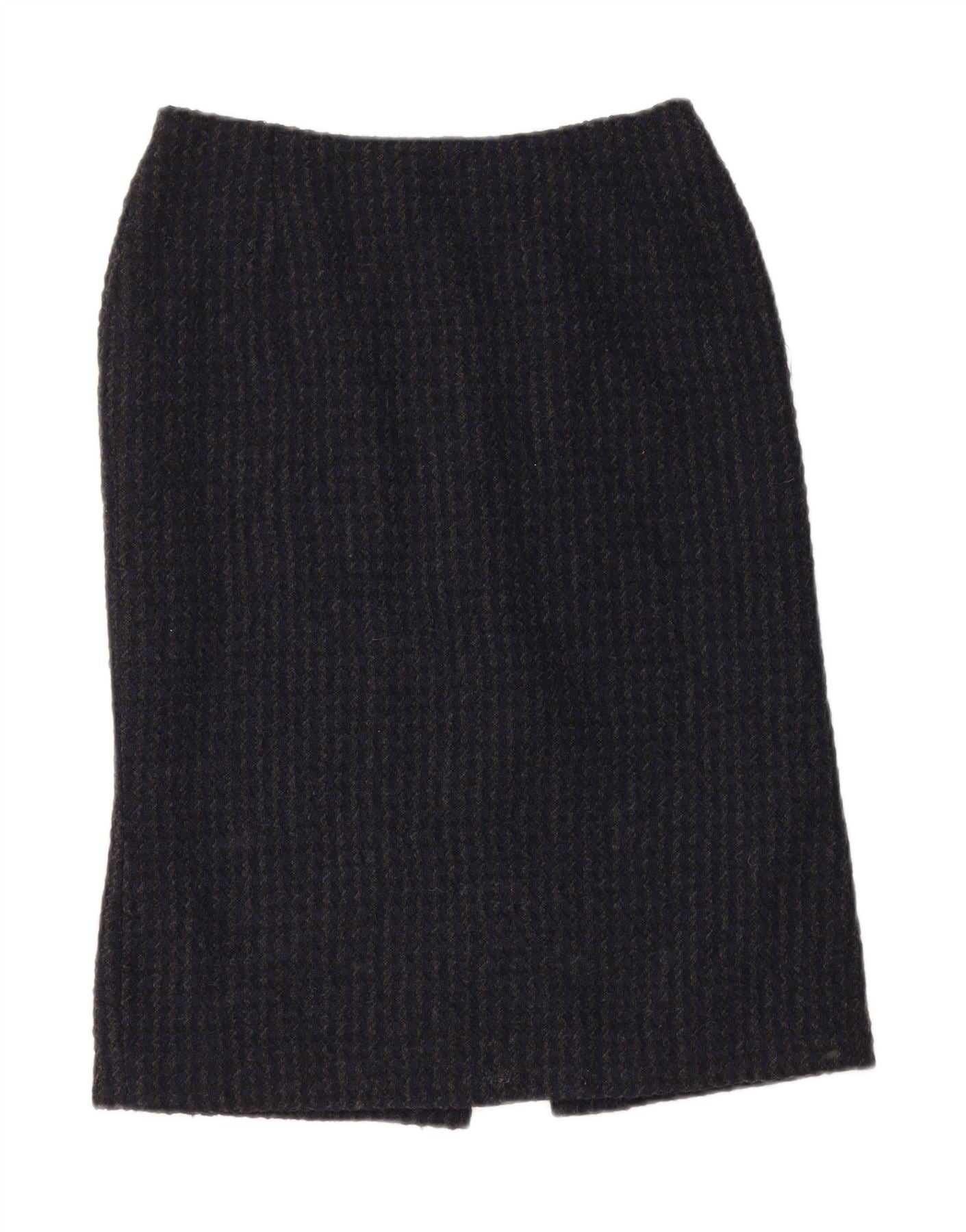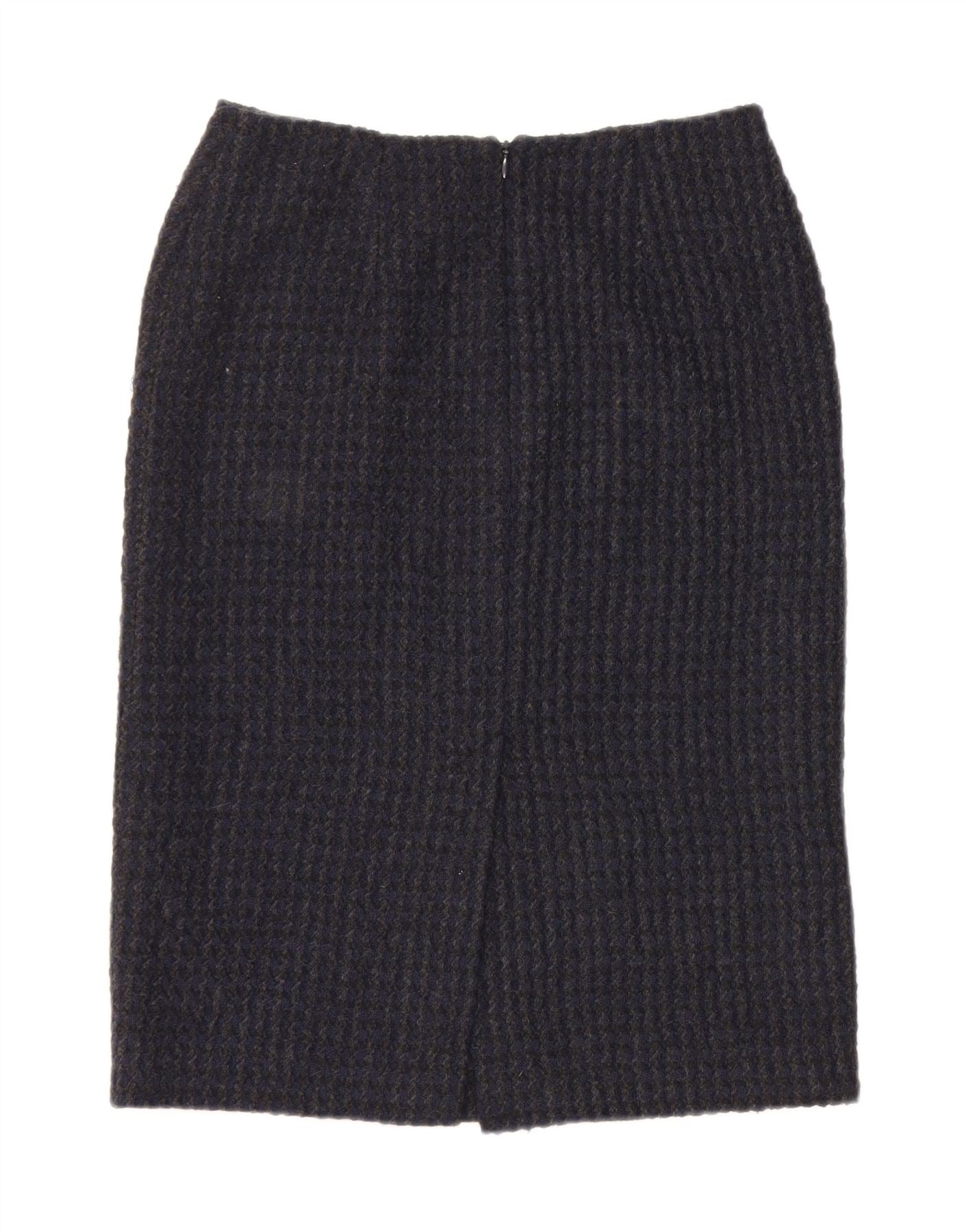SPORTMAX Womens Pencil Skirt UK 10 Small W26 Navy Blue Check Wool