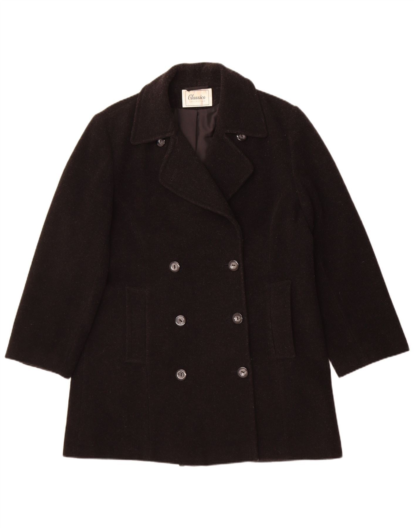 Dwurzędowy płaszcz damski St. Bernard UK 14, średnia czarna wełna