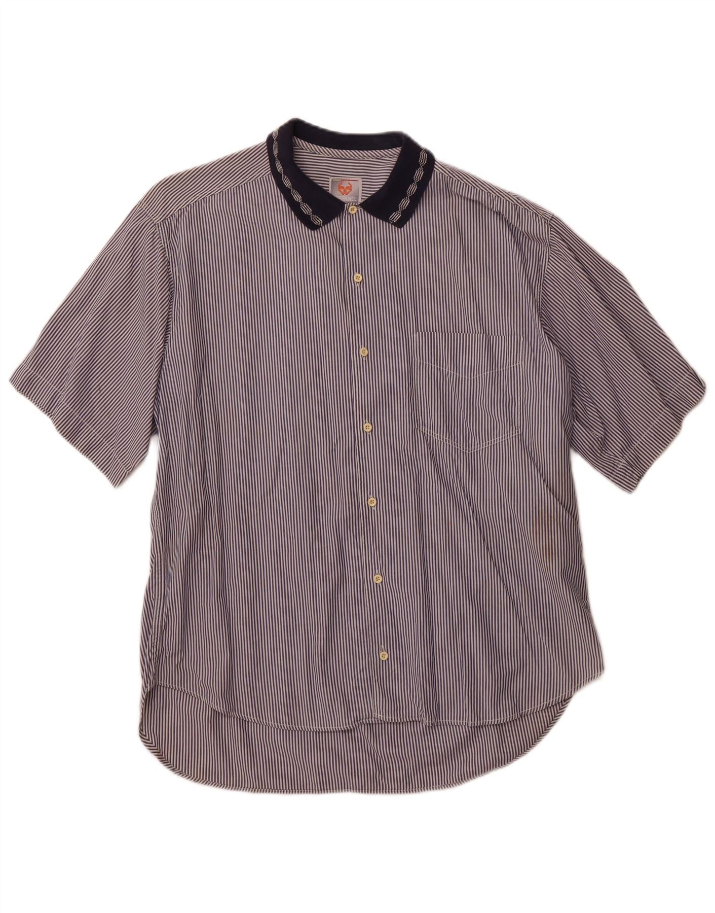 STEFANEL Męska koszula z krótkim rękawem, duże, niebieskie prążki