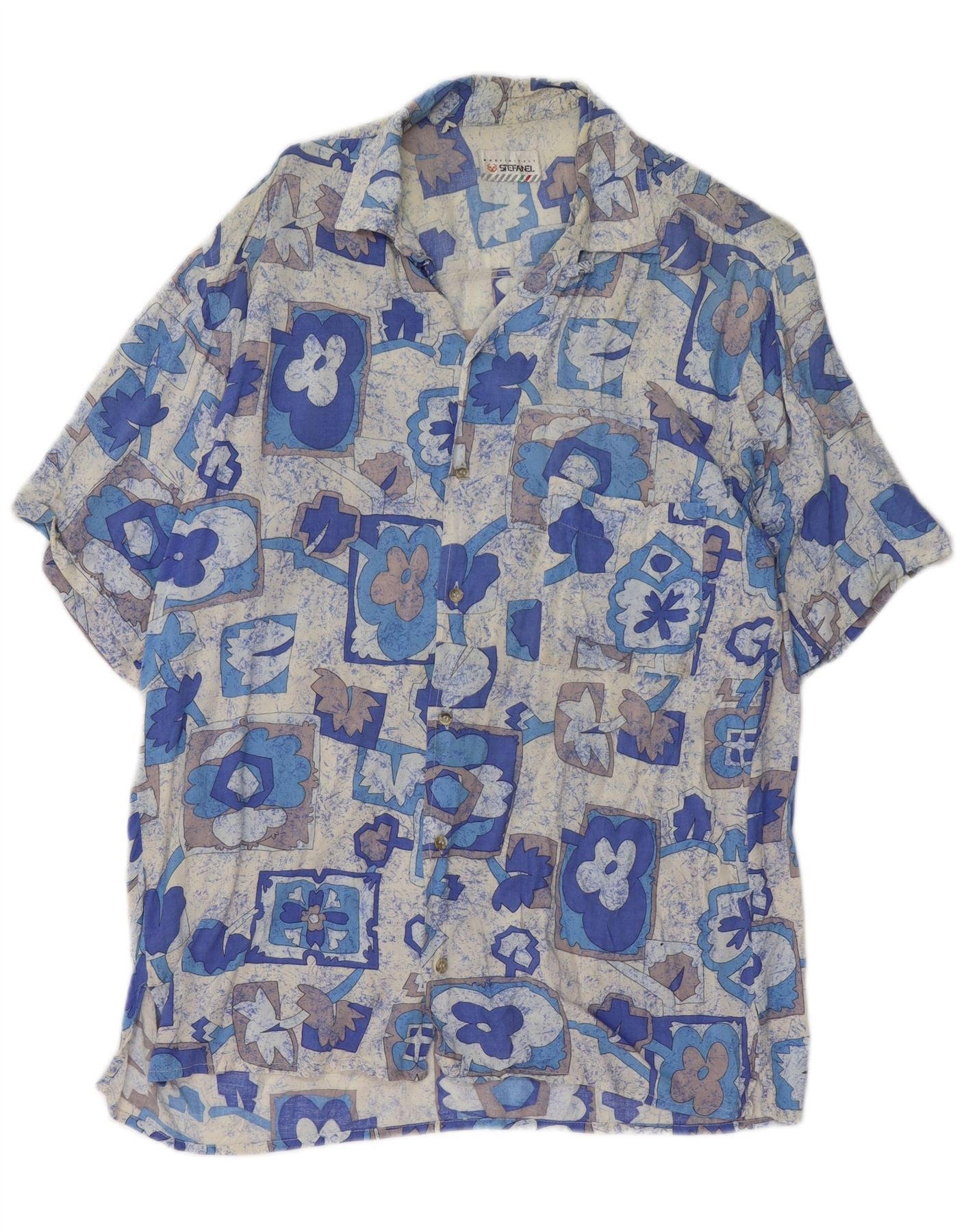 STEFANEL Męska koszula z krótkim rękawem, średnioniebieska, patchworkowa wiskoza