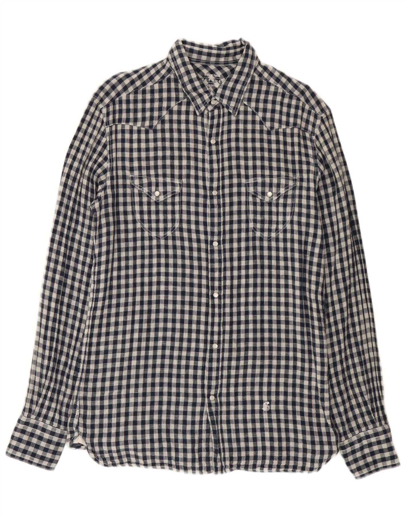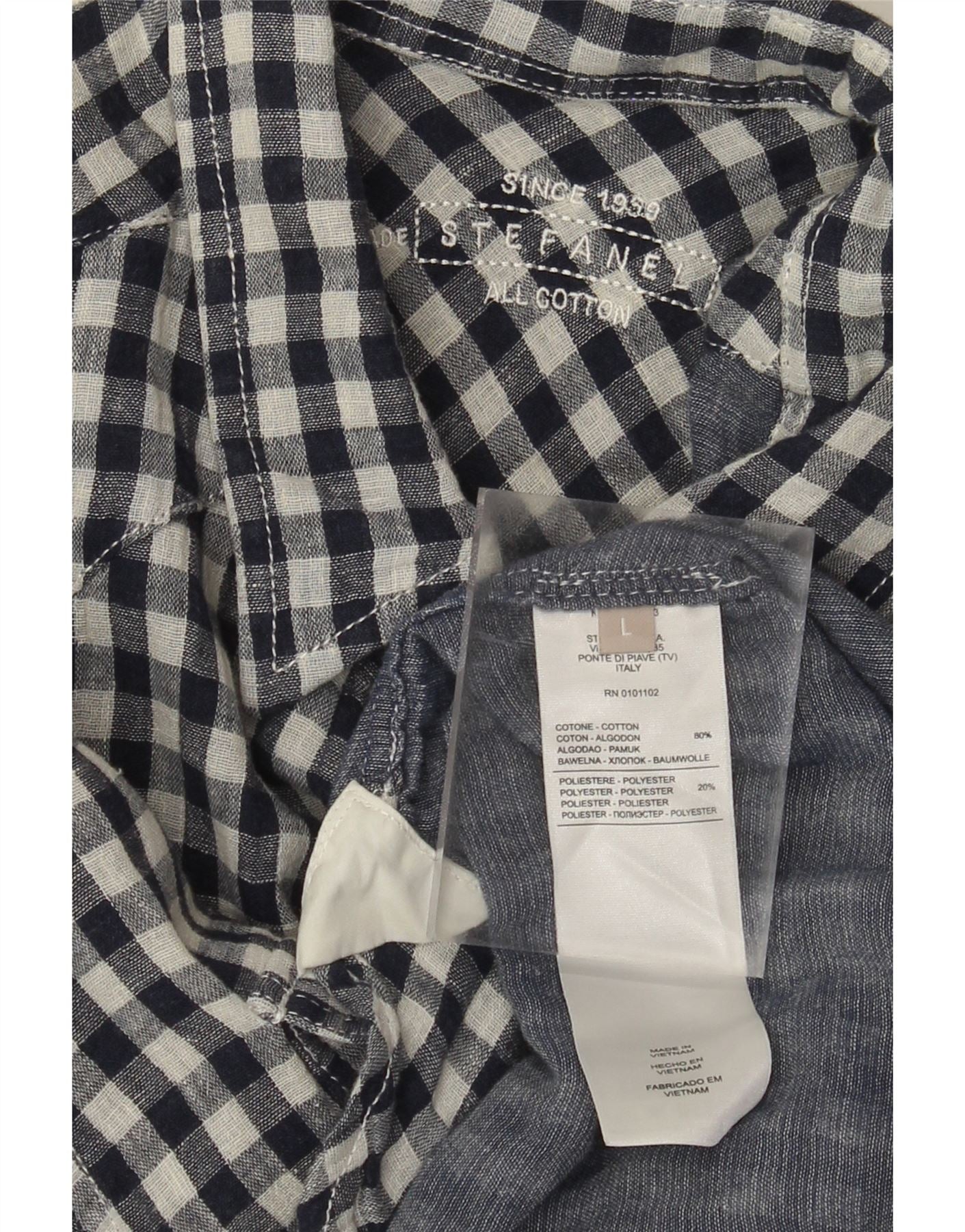 Męska koszula westernowa Stefanel, duża, granatowa, bawełniana w kratkę