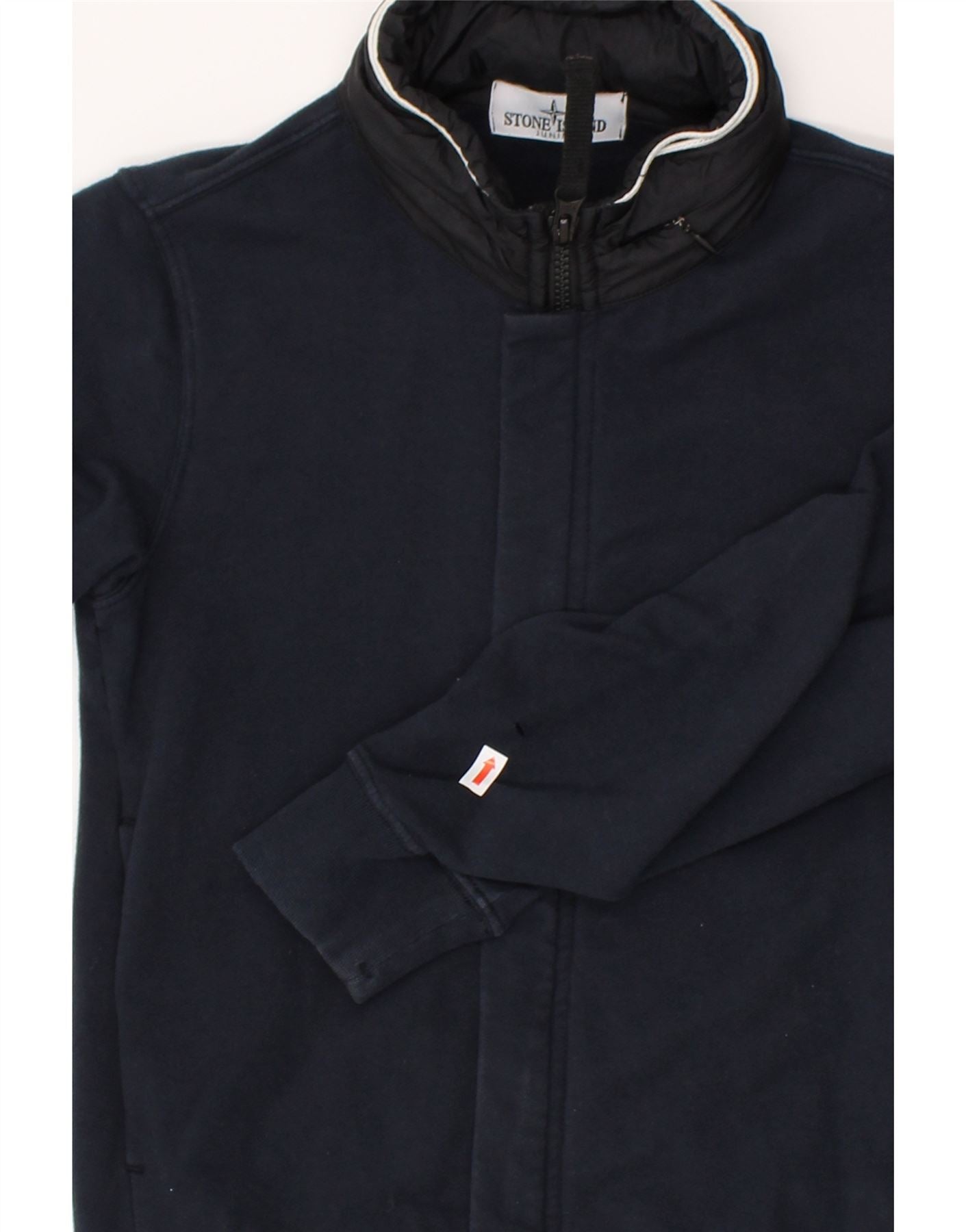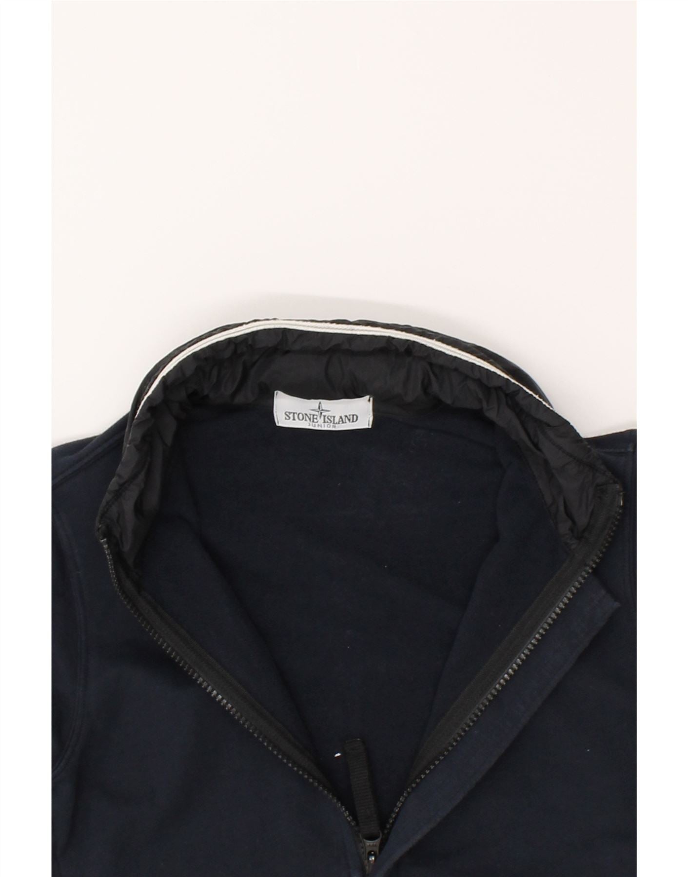 STONE ISLAND Boys Hooded Tracksuit Top Jacket 7-8 Years Navy Blue Cotton