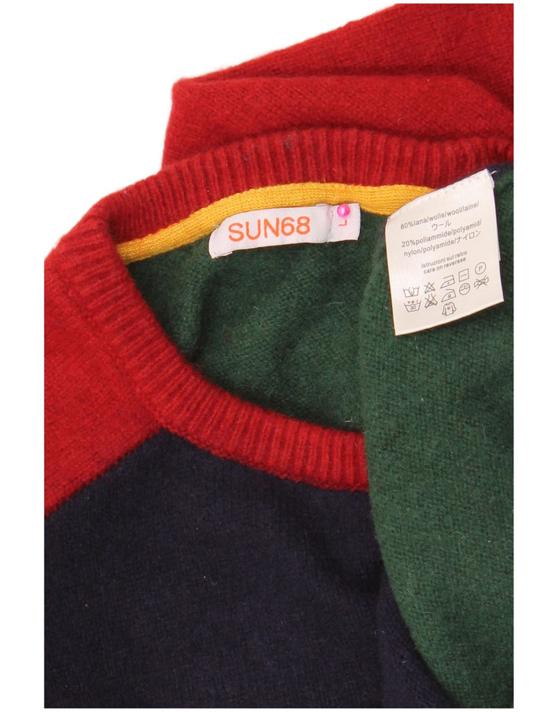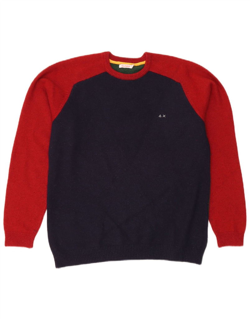 Damski sweter z okrągłym dekoltem SUN68 UK 16, duży, granatowy, z blokami kolorów