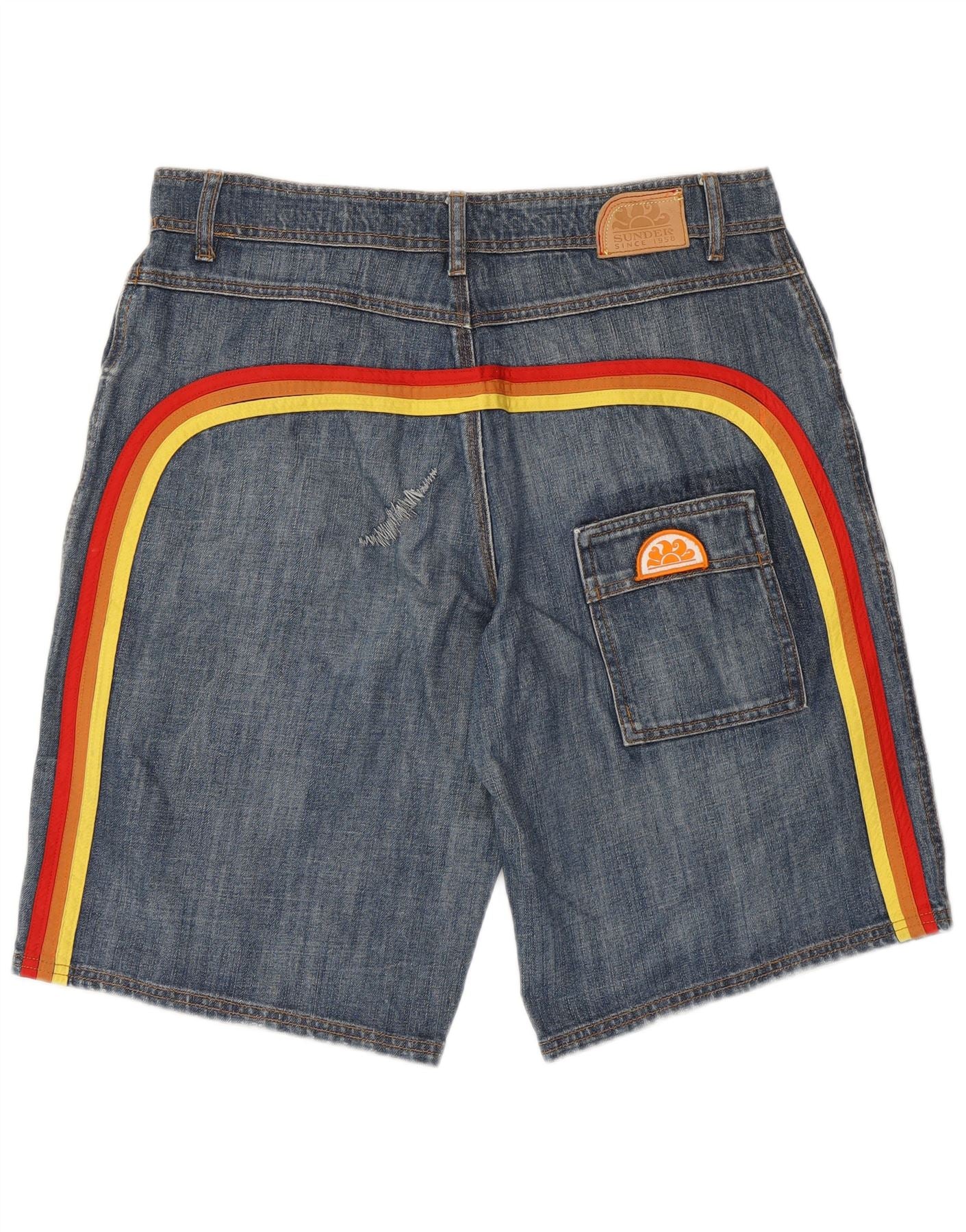 Męskie spodenki jeansowe SUNDEK W36, duże, bawełniane, w niebieskie paski