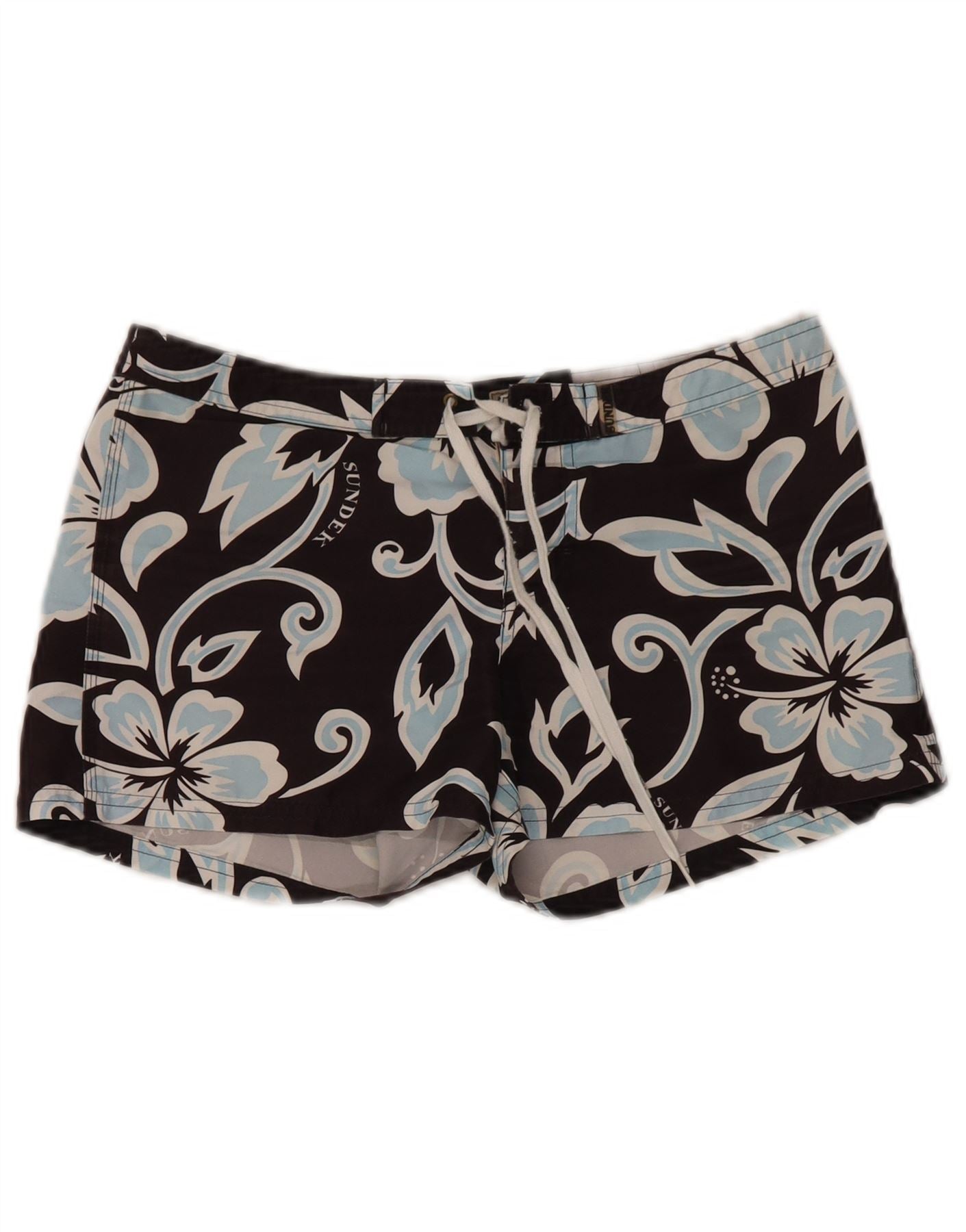 Damskie spodenki kąpielowe SUNDEK z niskim stanem UK 14, średnie czarne w kwiaty
