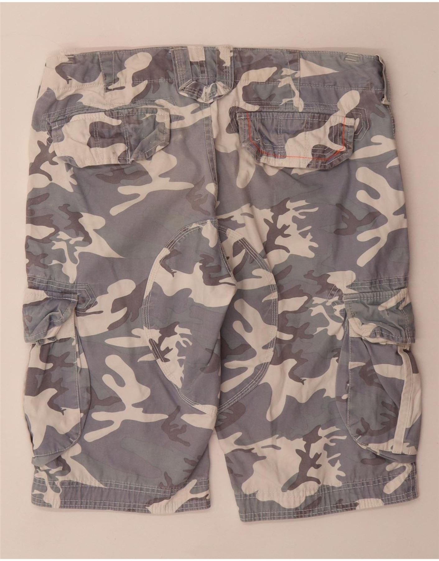SUPERDRY Męskie spodenki cargo, małe W32, szara bawełna w kamuflażu