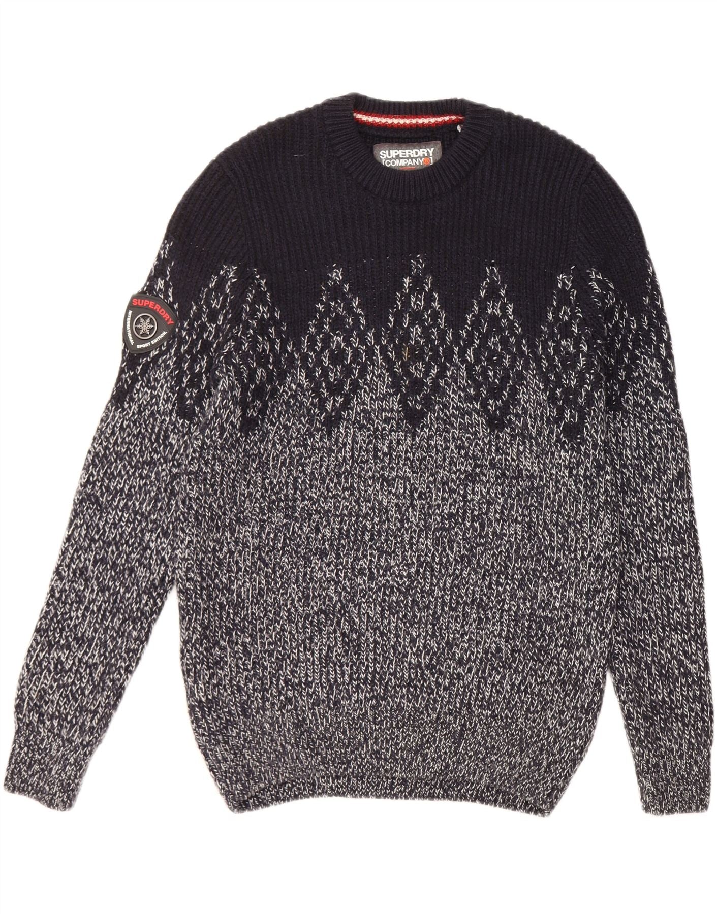 SUPERDRY Męski sweter z okrągłym dekoltem, duży granatowy Argyle/Diament