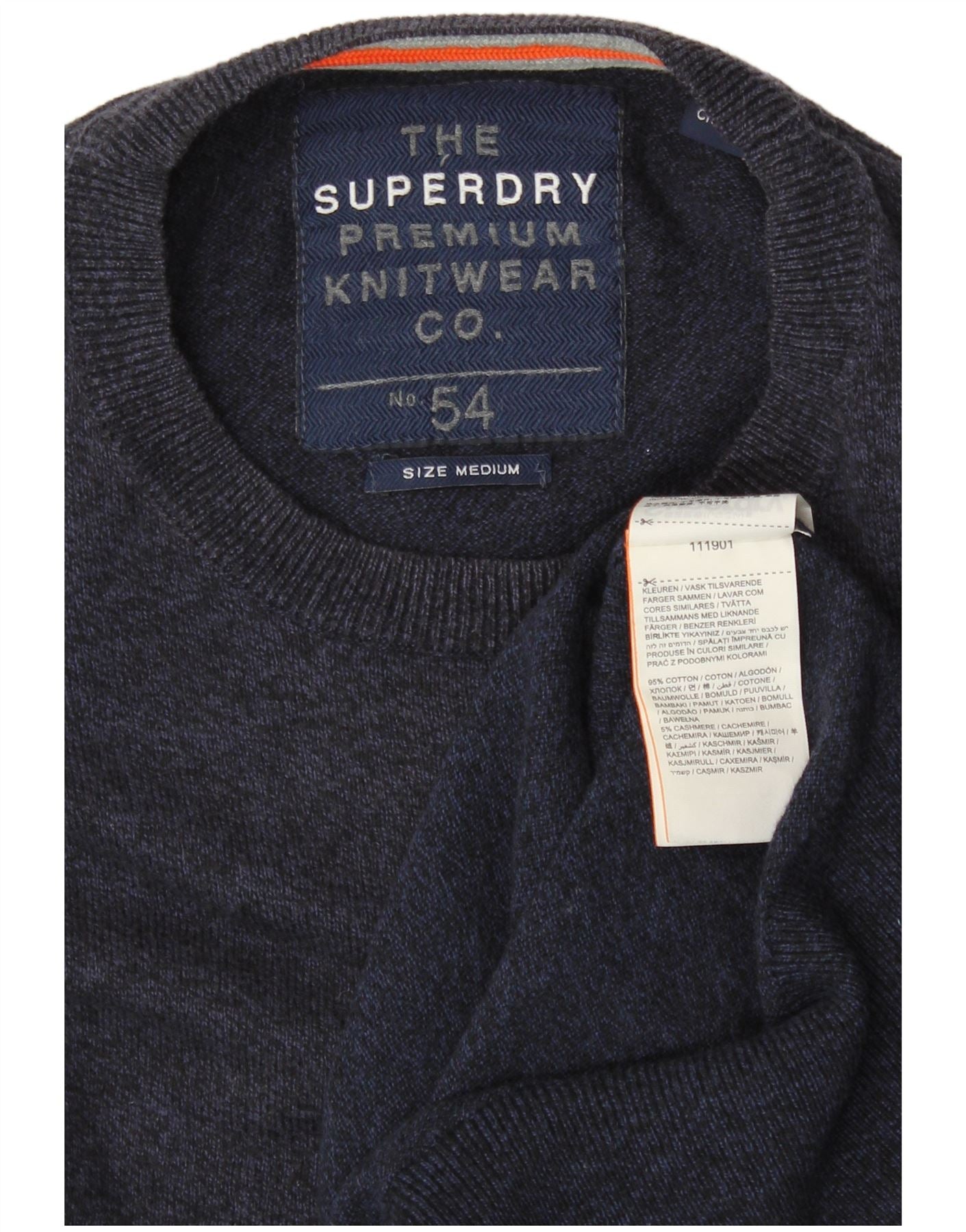 SUPERDRY Męski sweter z okrągłym dekoltem, średni granatowy, bawełniany