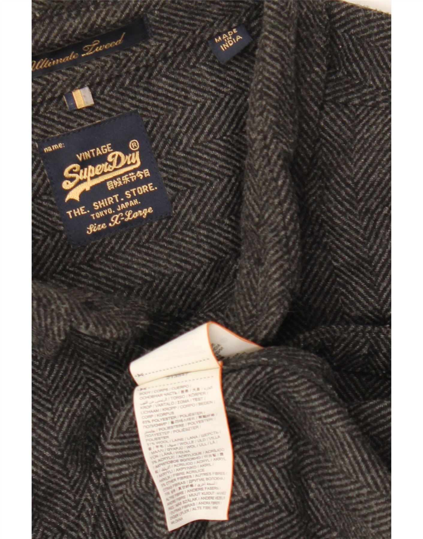 SUPERDRY Męska koszula flanelowa XL, szary, poliester w jodełkę