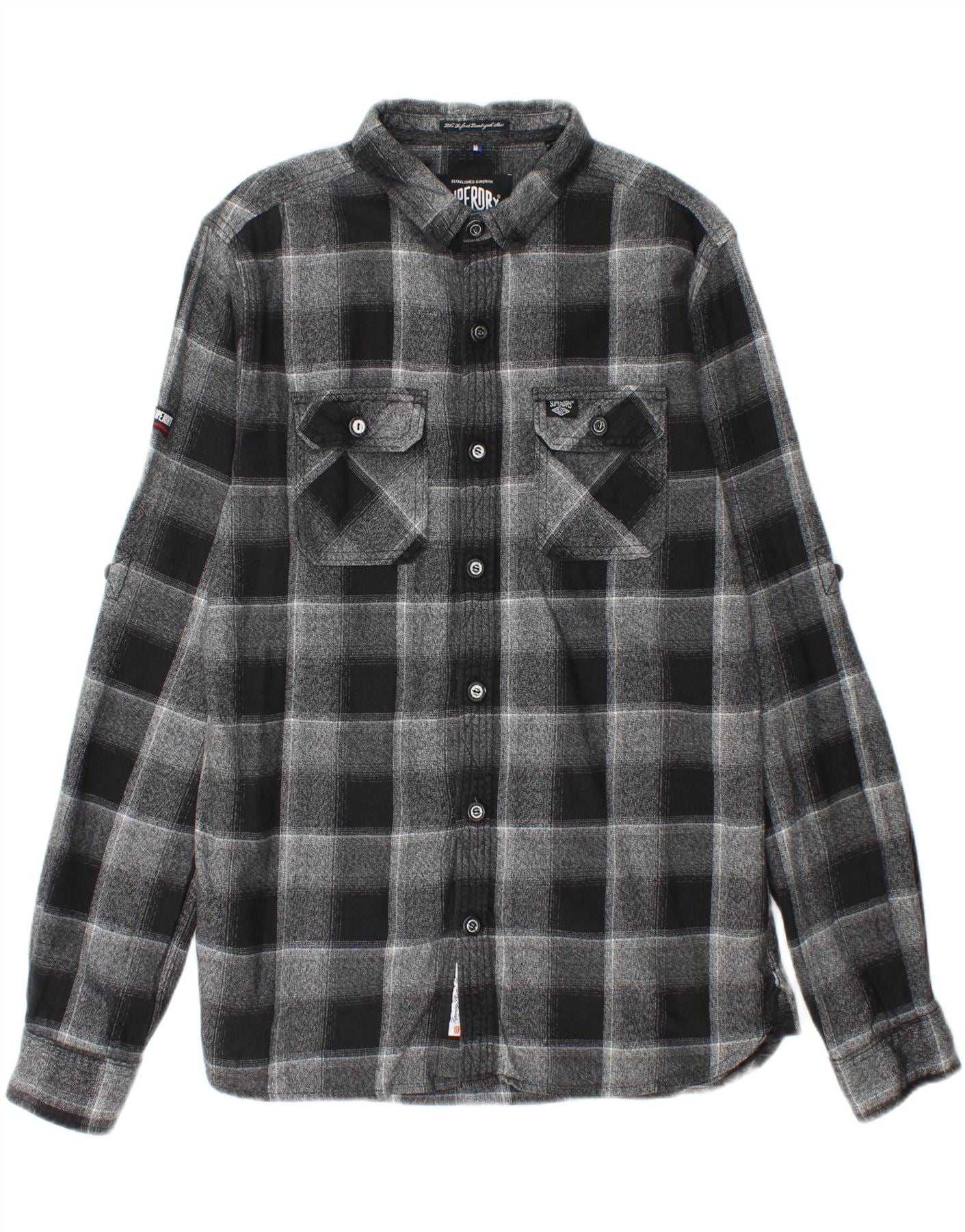 SUPERDRY Męska koszula flanelowa XL, szara, bawełniana w kratę