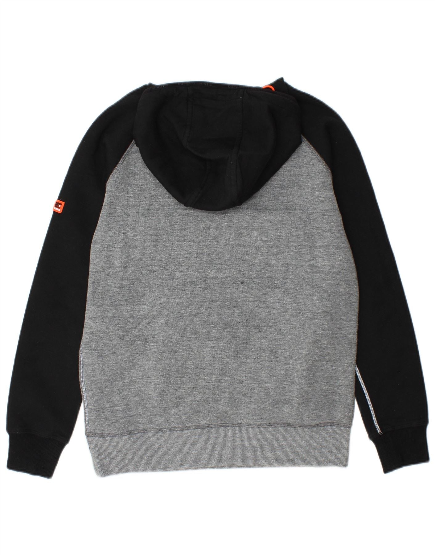 SUPERDRY Męski sweter z kapturem i grafiką, mały, szary, bawełniany z blokami kolorów