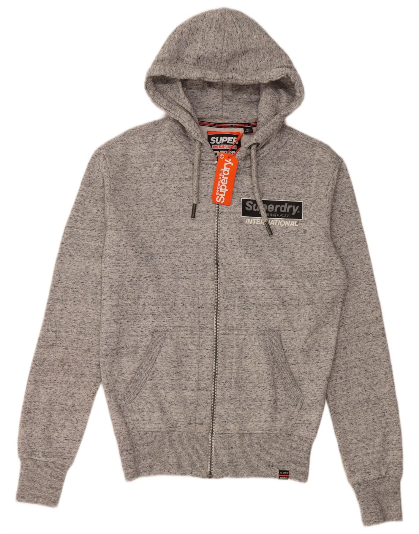 SUPERDRY Męski sweter z kapturem i zamkiem błyskawicznym XS, szary, z plamkami, bawełniany