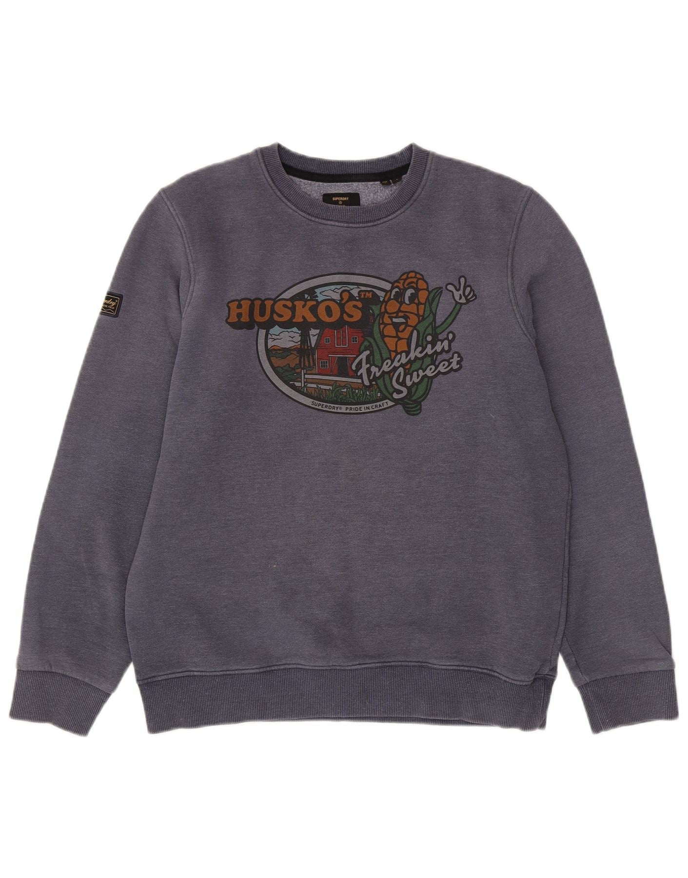 SUPERDRY Męski sweter z grafiką, duży, granatowy, bawełniany
