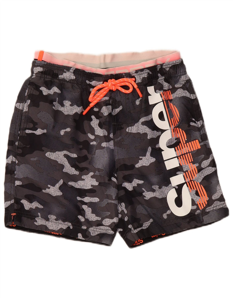 Męskie spodenki kąpielowe SUPERDRY z grafiką, mały, szary kamuflaż, poliester
