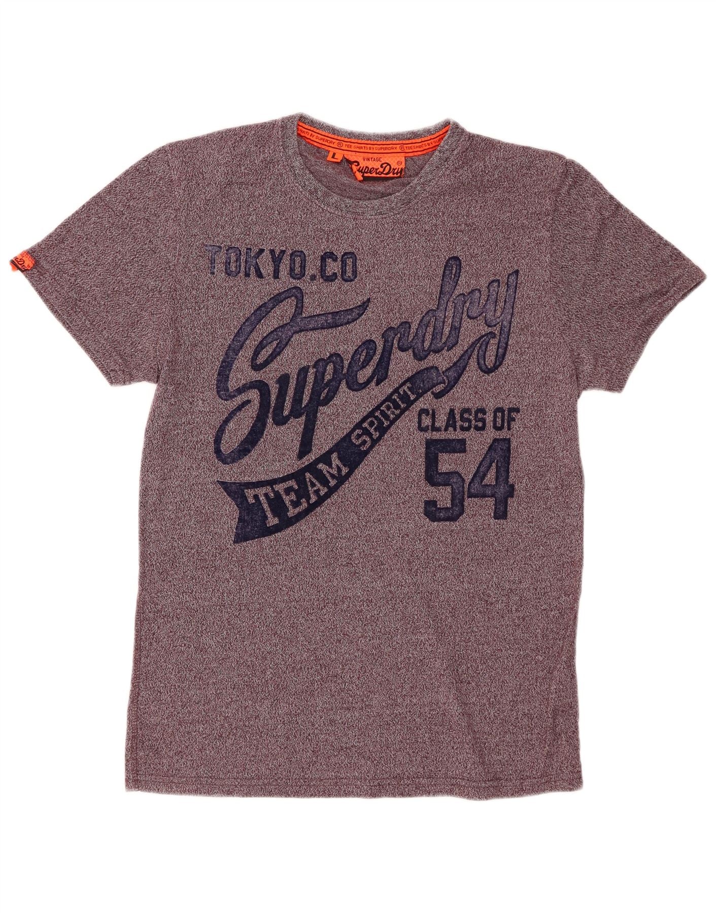SUPERDRY Męski T-shirt z grafiką, duży, bordowy, nakrapiany bawełniany