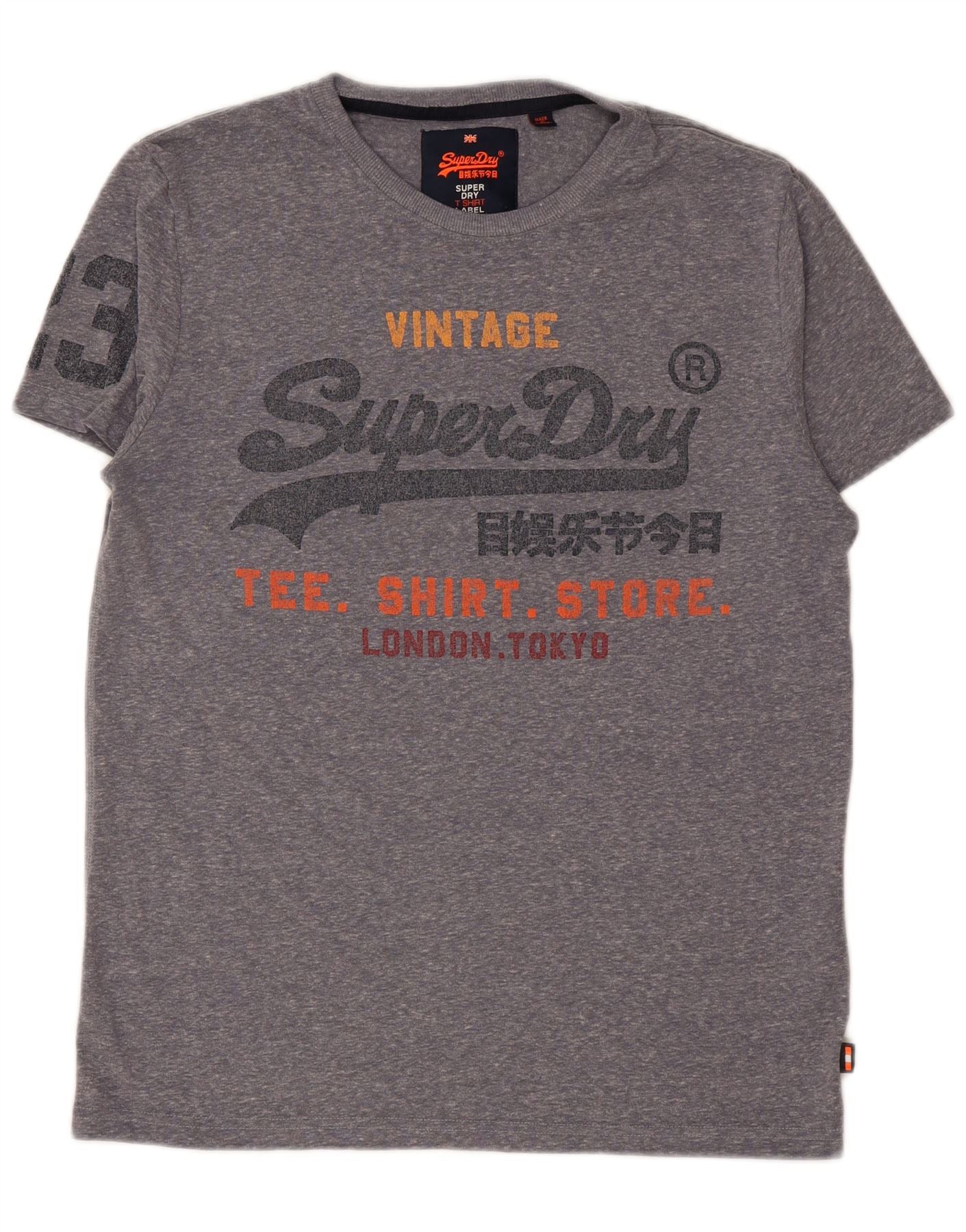 SUPERDRY Męski T-shirt z grafiką, duży, szary, bawełniany w plamki