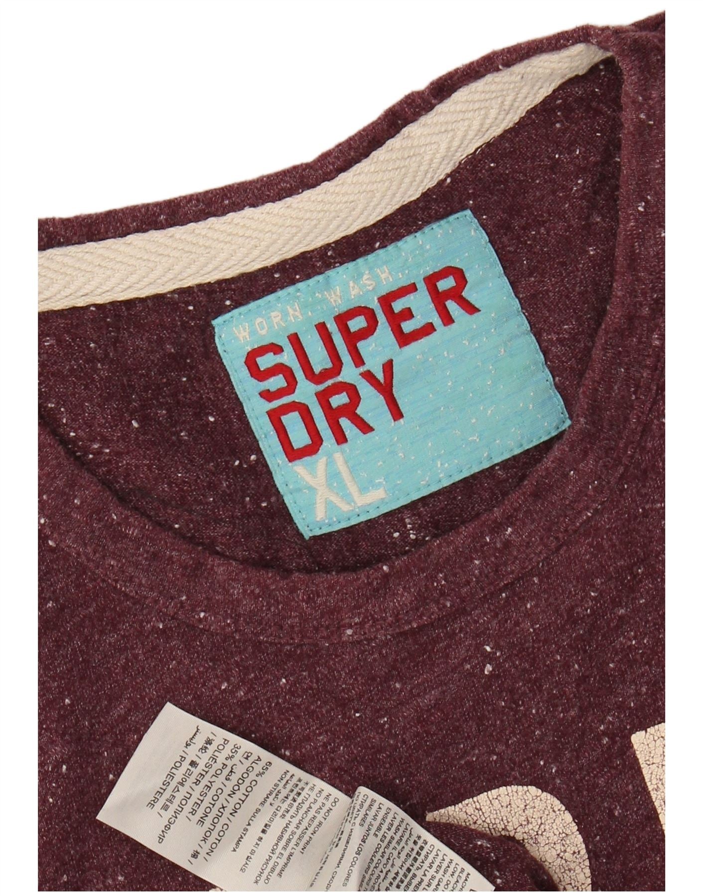 SUPERDRY Męski T-shirt z grafiką, top XL, bordowa, nakrapiana bawełna