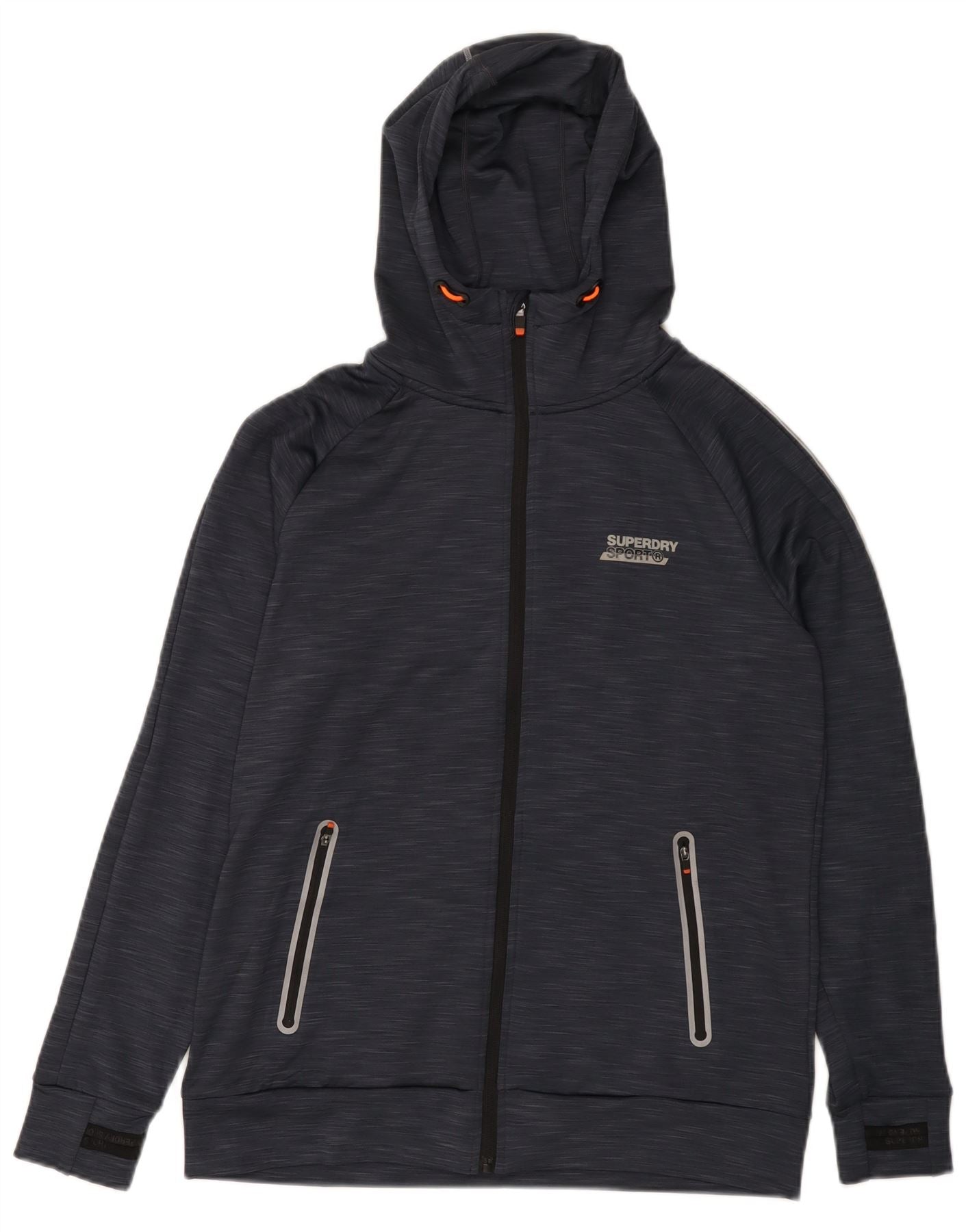 SUPERDRY Męski sweter z kapturem i zamkiem błyskawicznym, duży, granatowy, nakrapiany poliester
