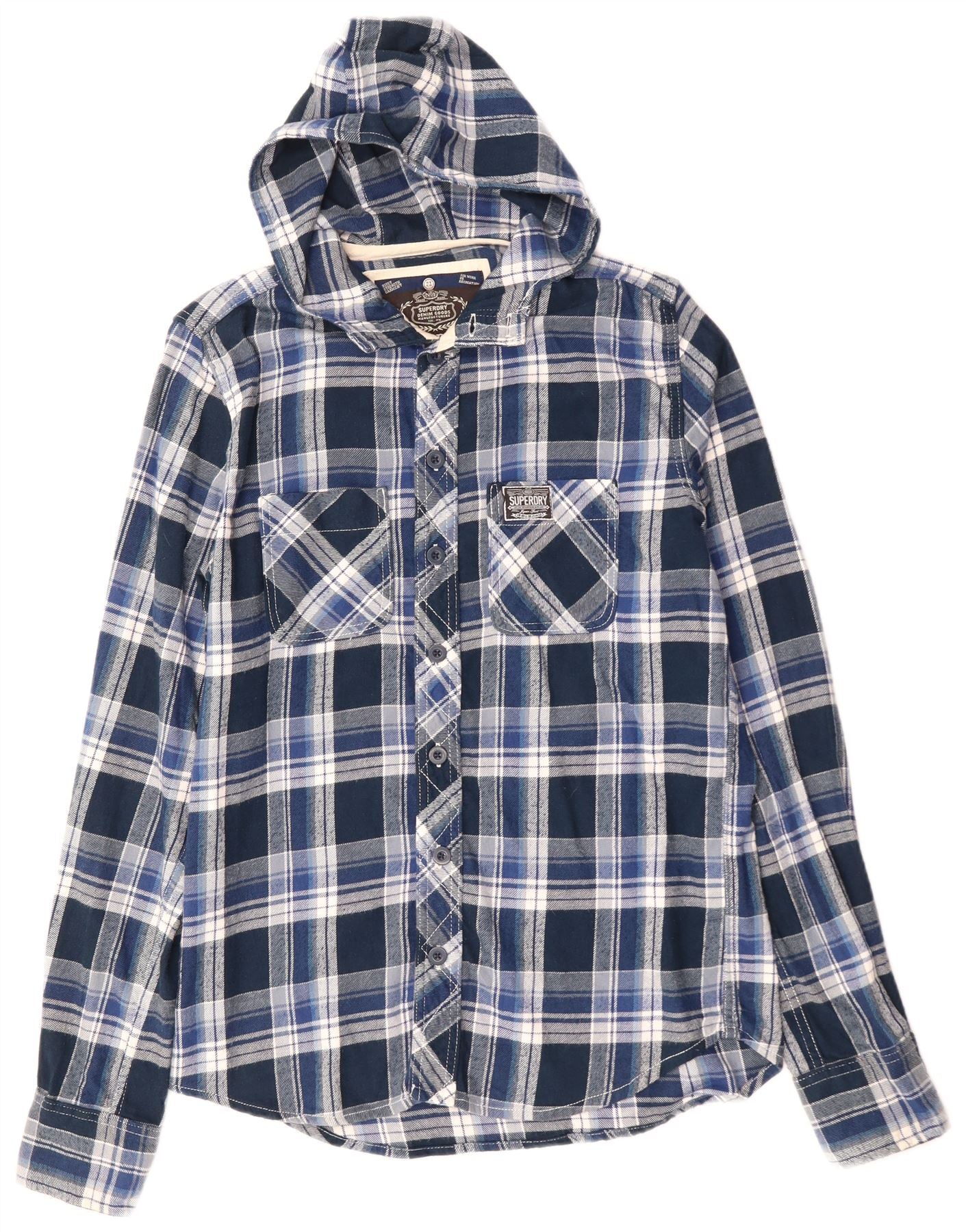 SUPERDRY Męska koszula flanelowa z kapturem, bawełniana w średnią niebieską kratkę