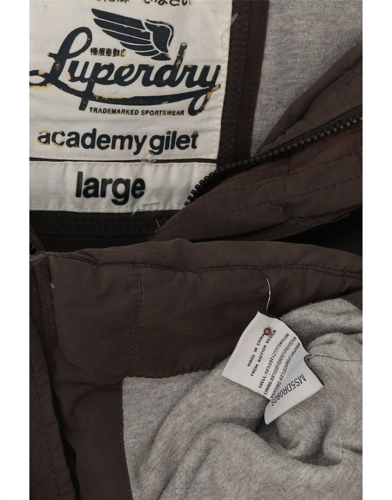 SUPERDRY Mens Hooded Padded Gilet UK 40 Large Grey Cotton