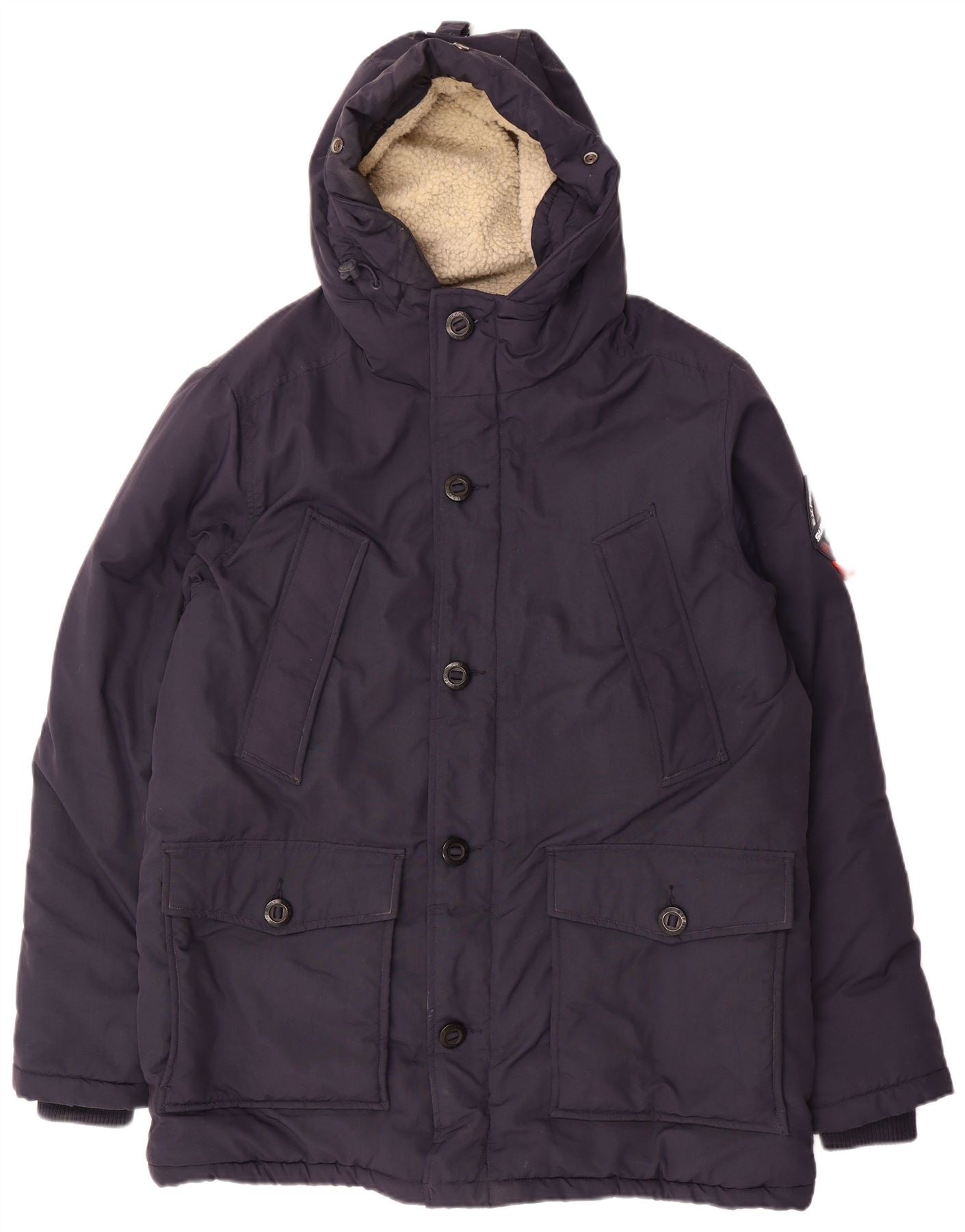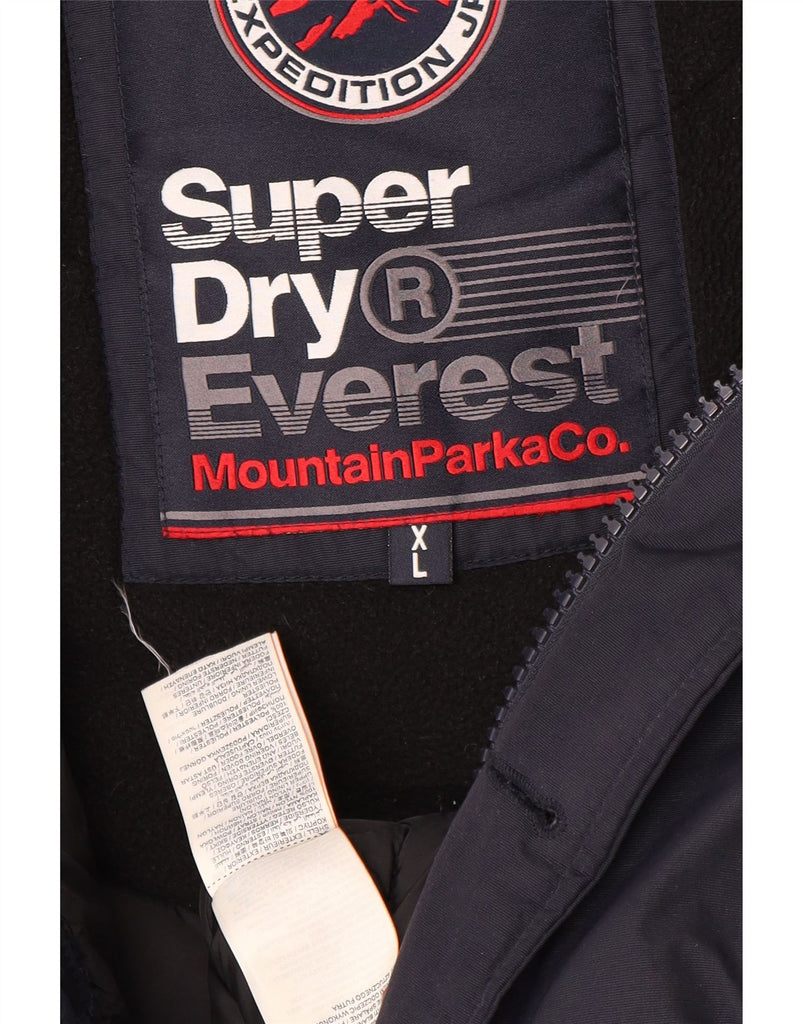 SUPERDRY Mens Hooded Parka Jacket UK 42 XL Navy Blue Nylon