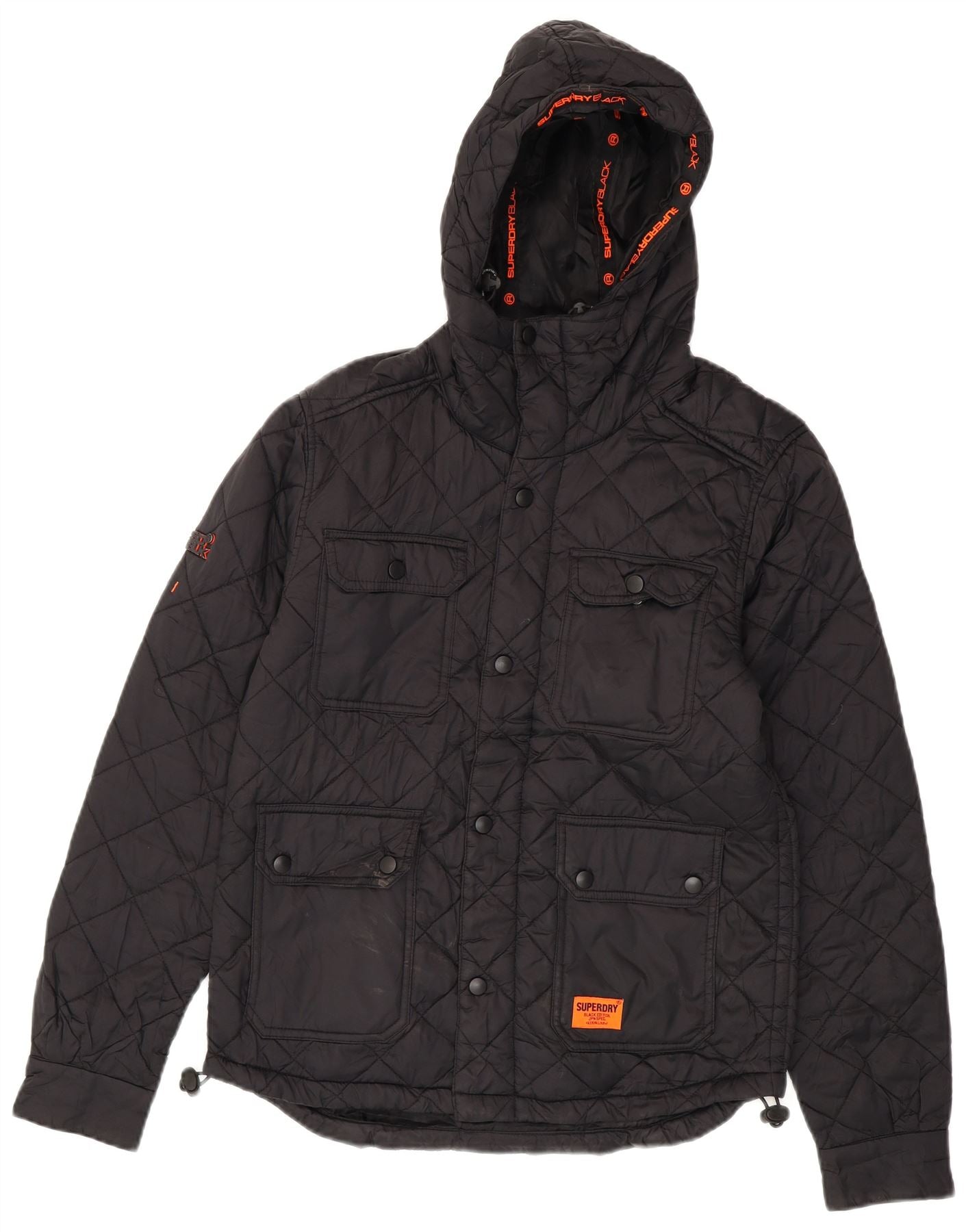 SUPERDRY Męska pikowana kurtka z kapturem UK 36 Small Black Nylon