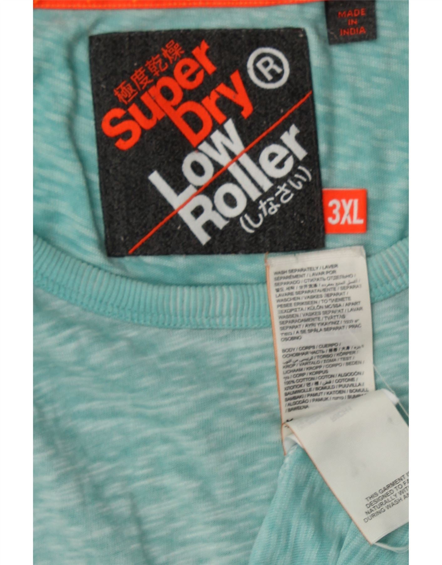 Męska kamizelka SUPERDRY z niską rolką 3XL, turkusowa, nakrapiana bawełna
