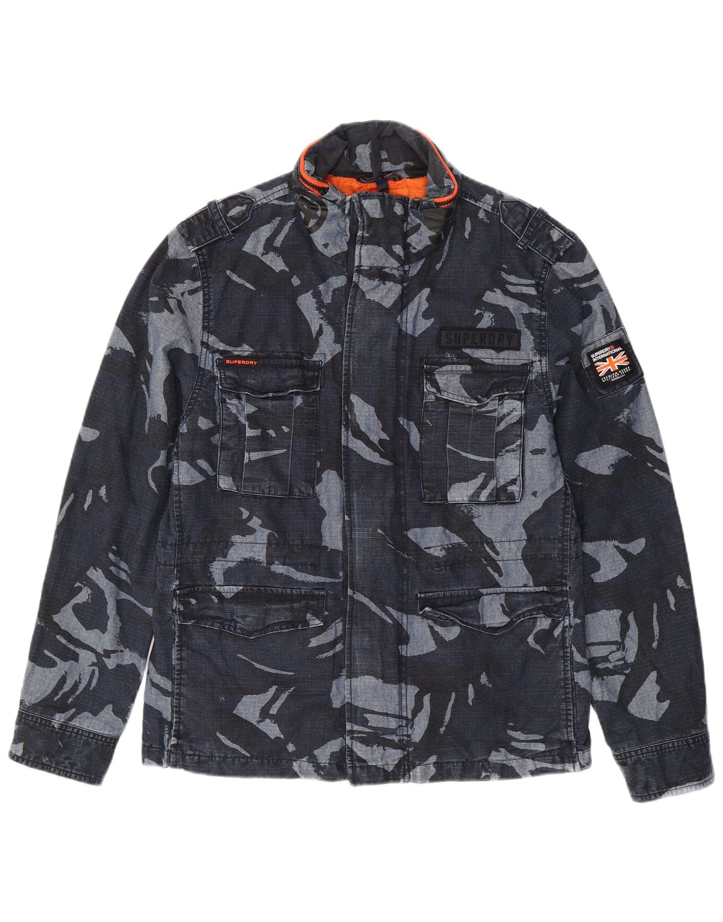 SUPERDRY Męska kurtka wojskowa UK 40, duża, granatowa, bawełniana w kamuflażu