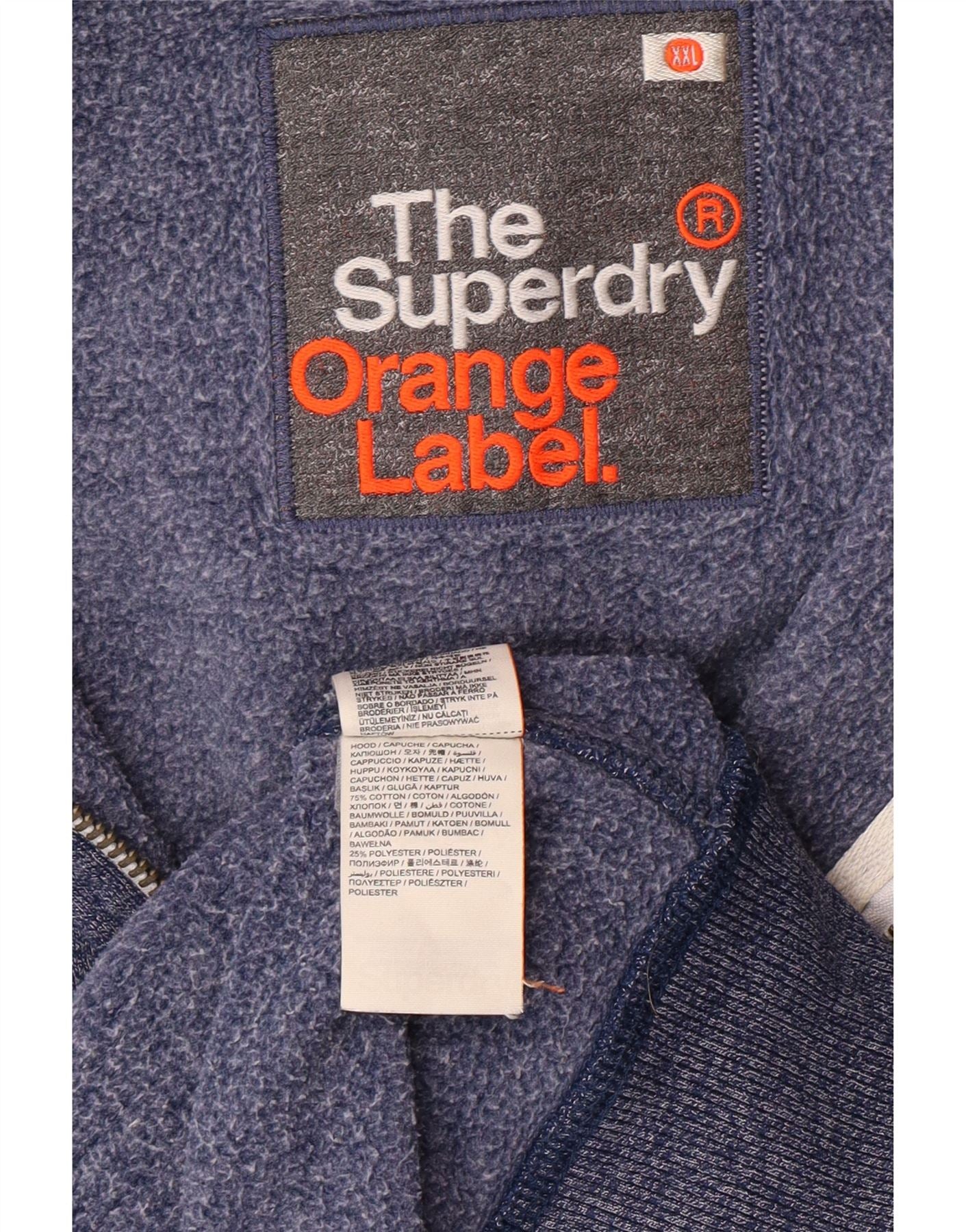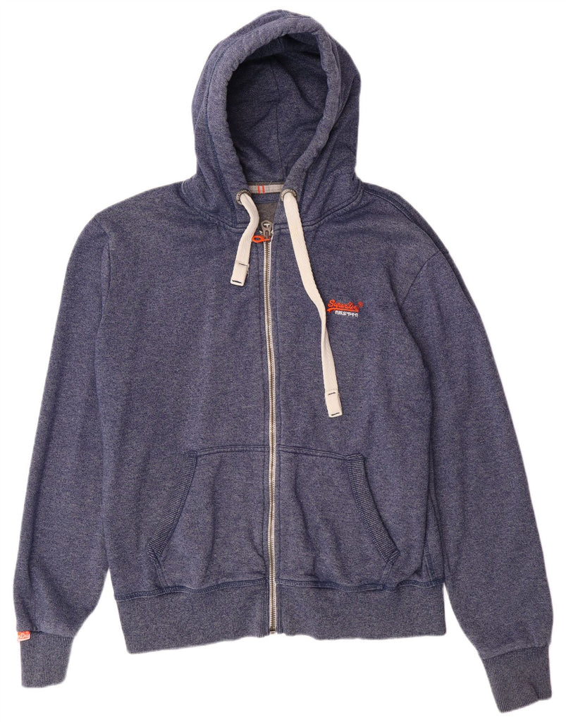 SUPERDRY Mens Orange Label Zip Hoodie Sweater 2XL Blue Flecked Cotton