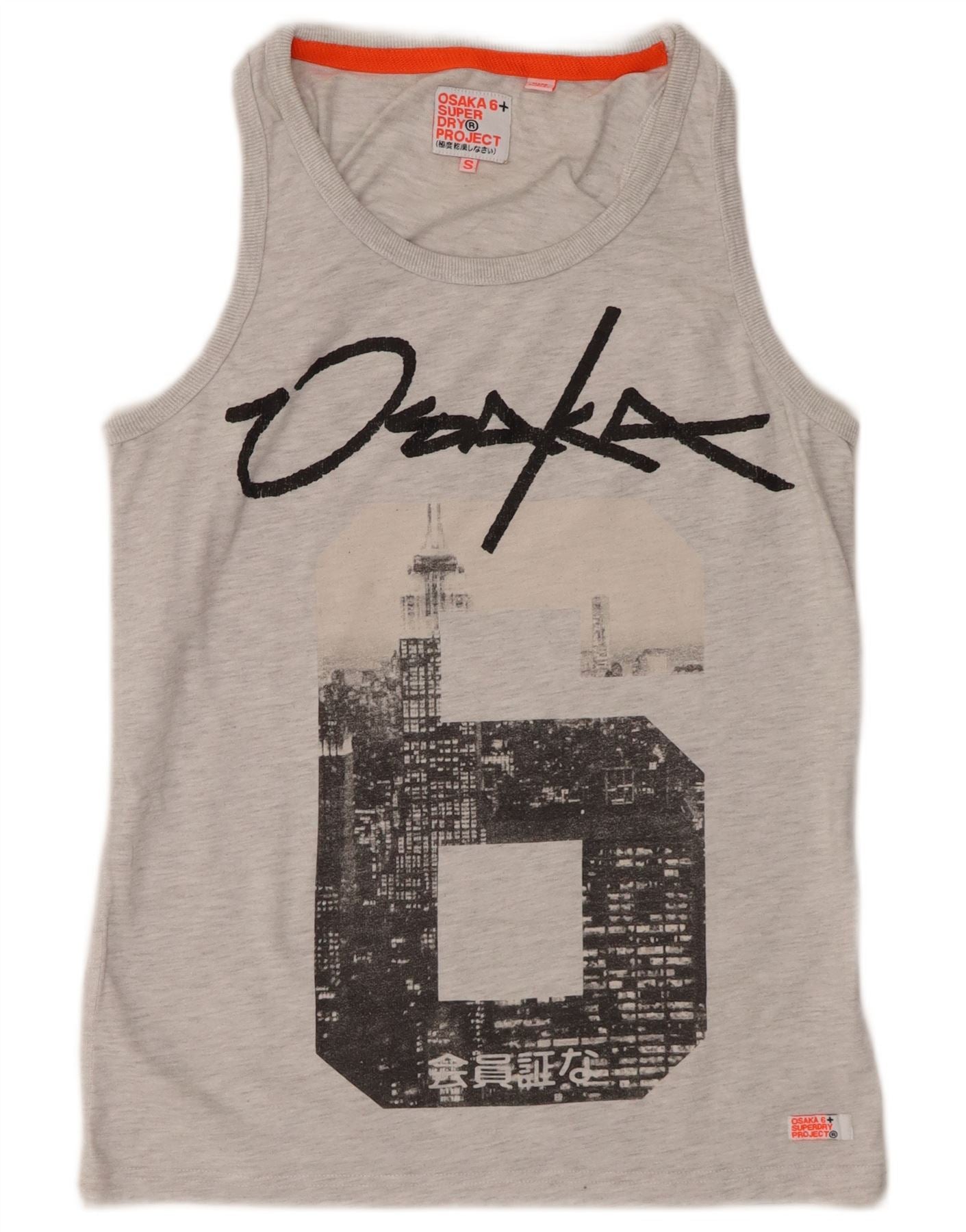 SUPERDRY Męska kamizelka z grafiką Osaka, mała, szara, bawełniana w plamki