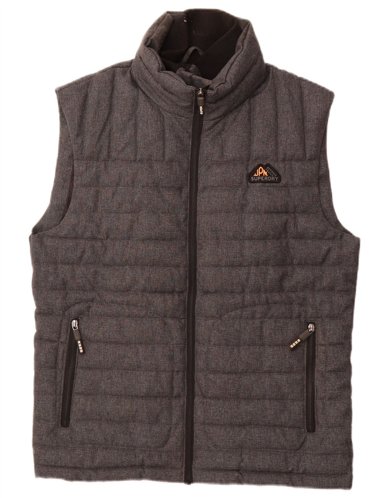 - AI Description: This Superdry mens waistcoat is a quilted design, offering thermal warmth. It features a high neck and a full zip closure for secure wear. The regular fit ensures comfortable layering. Sleeveless for ease of movement, it includes practical pockets for functionality. A subtle logo accent provides brand recognition. This grey waistcoat is ideal for winter layering.