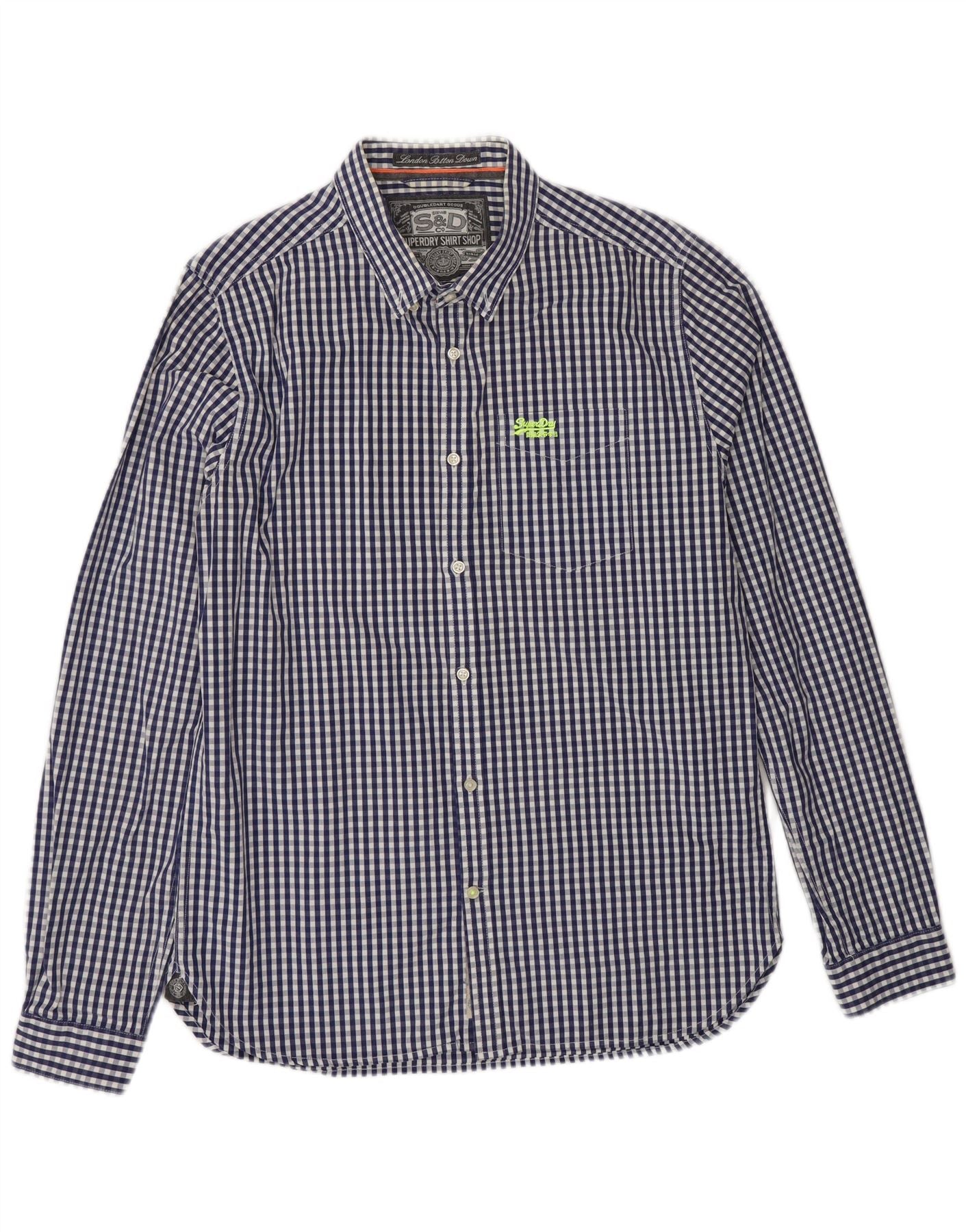SUPERDRY Koszula męska, duża, bawełniana w kratkę, granatowa