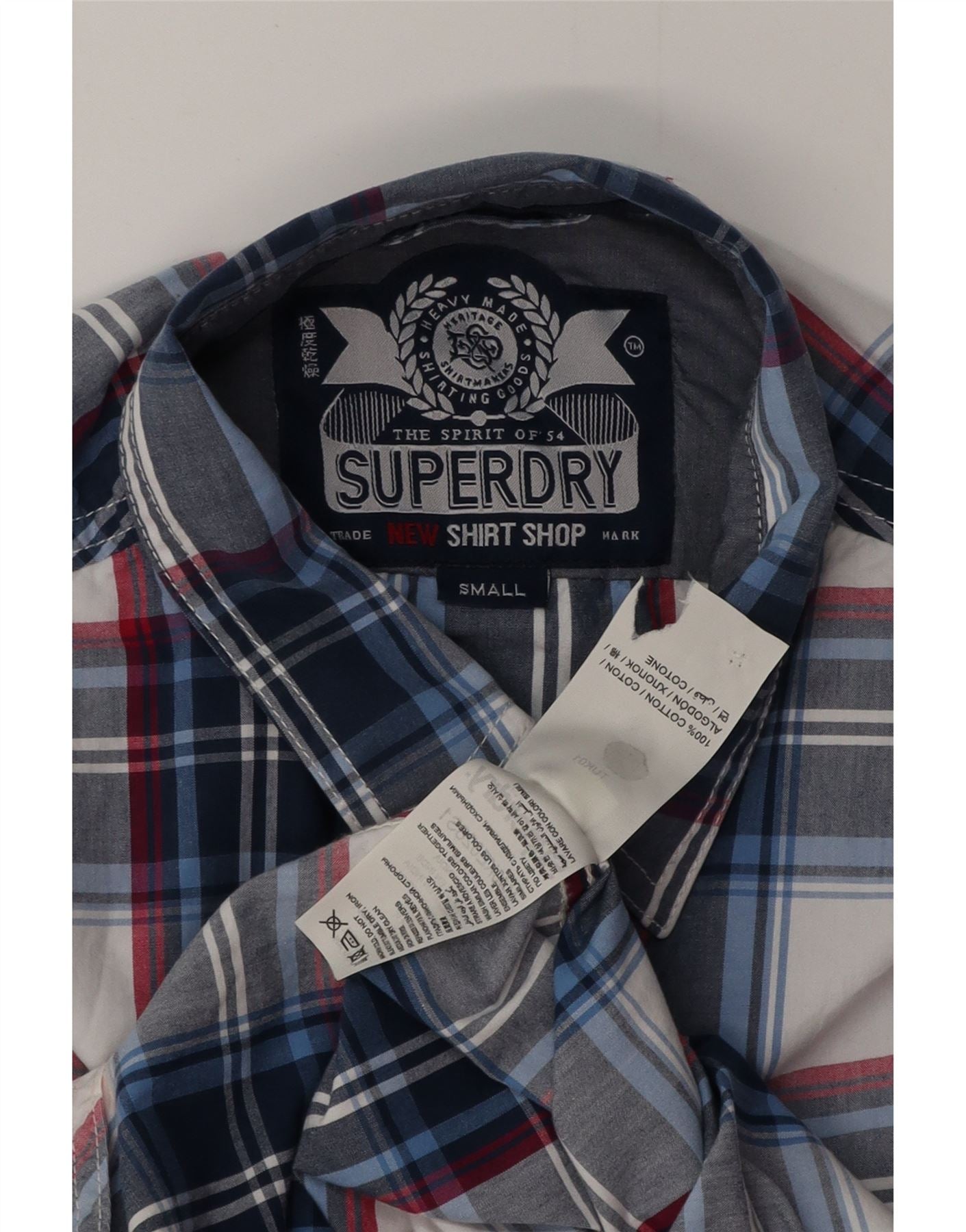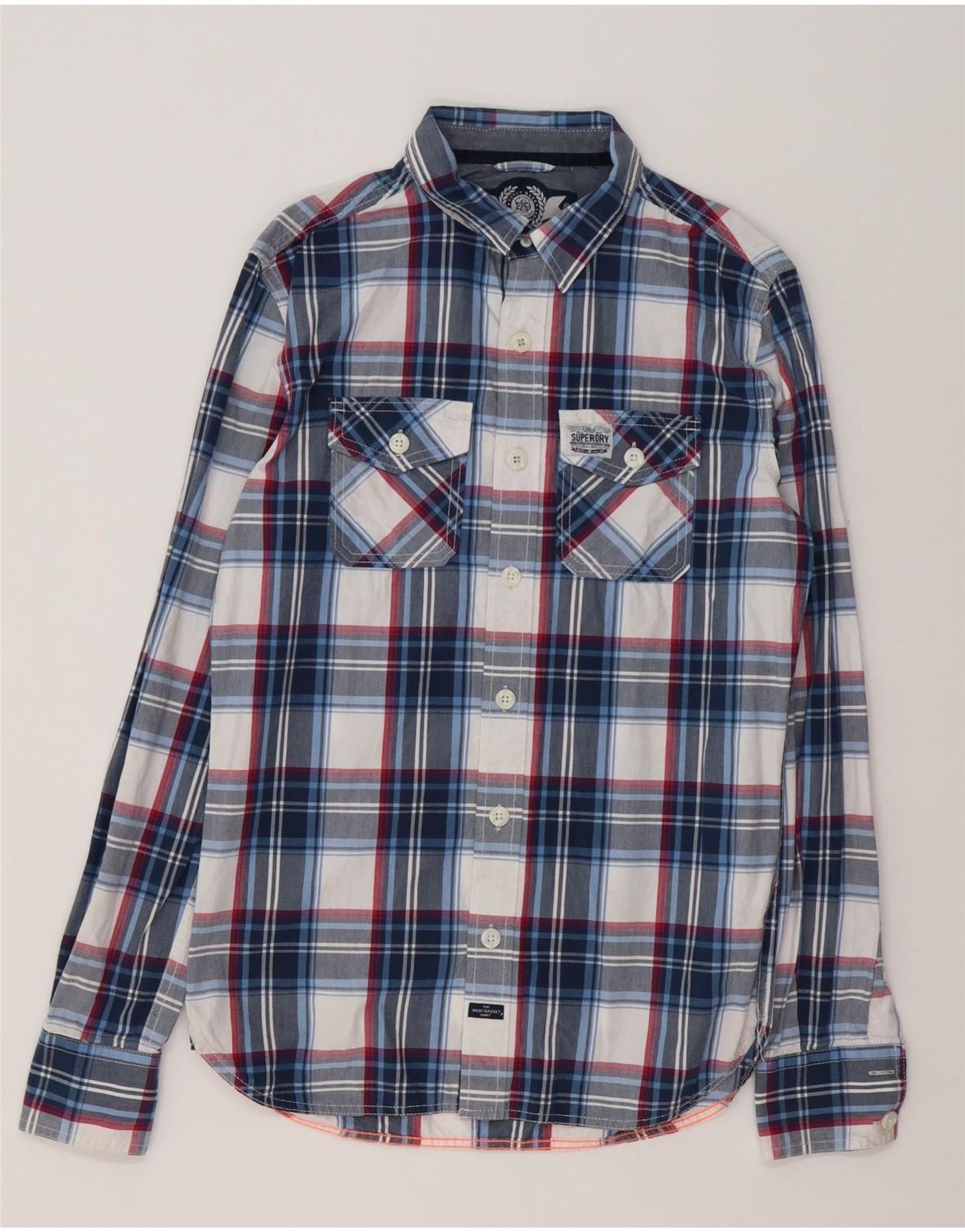 SUPERDRY Koszula męska, mała, bawełniana w granatową kratę