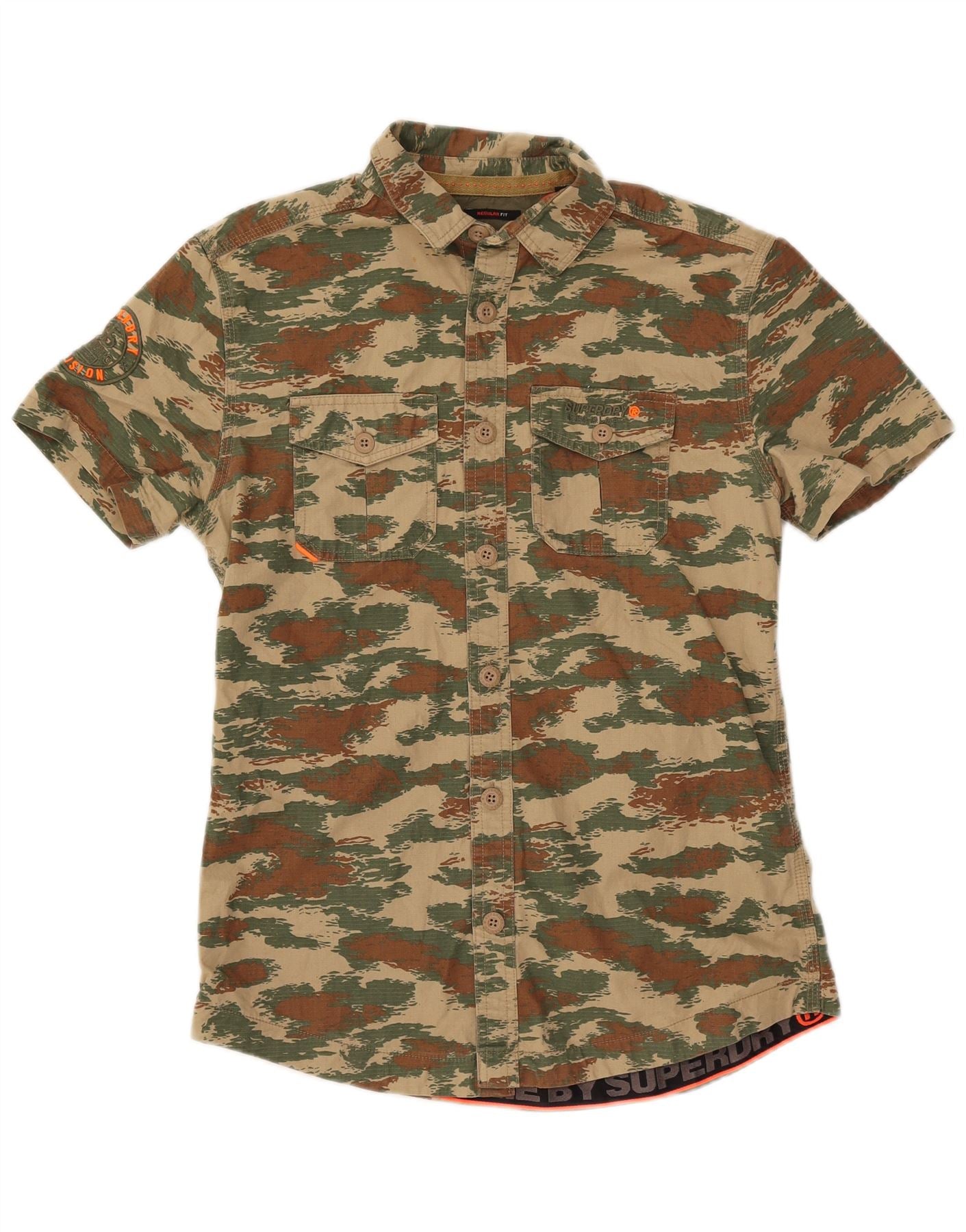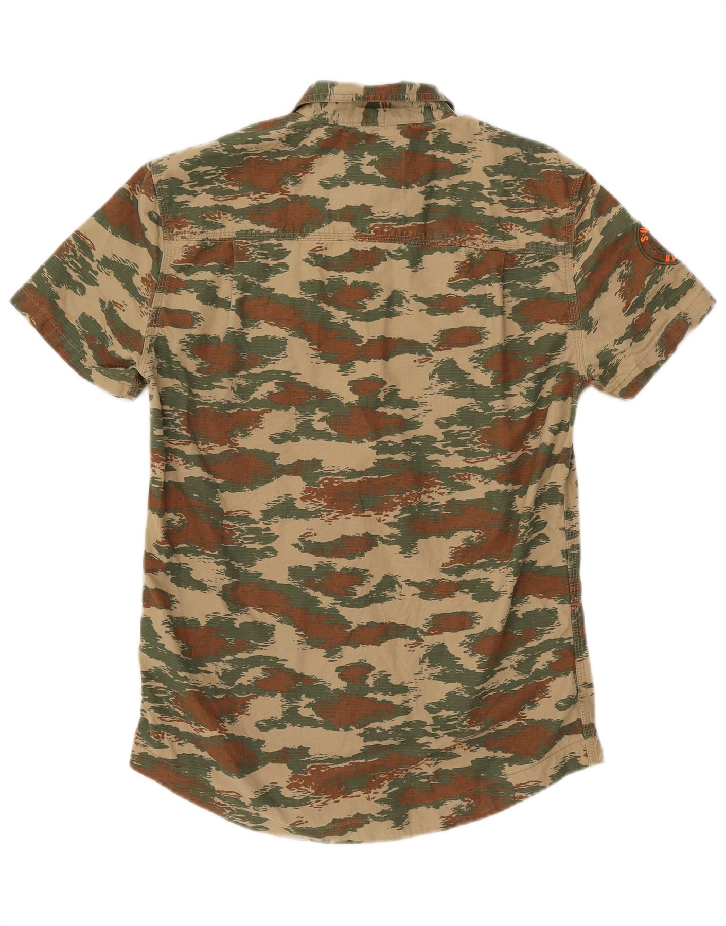 SUPERDRY Męska koszula z krótkim rękawem o regularnym kroju, mała, bawełniana w kamuflażu khaki