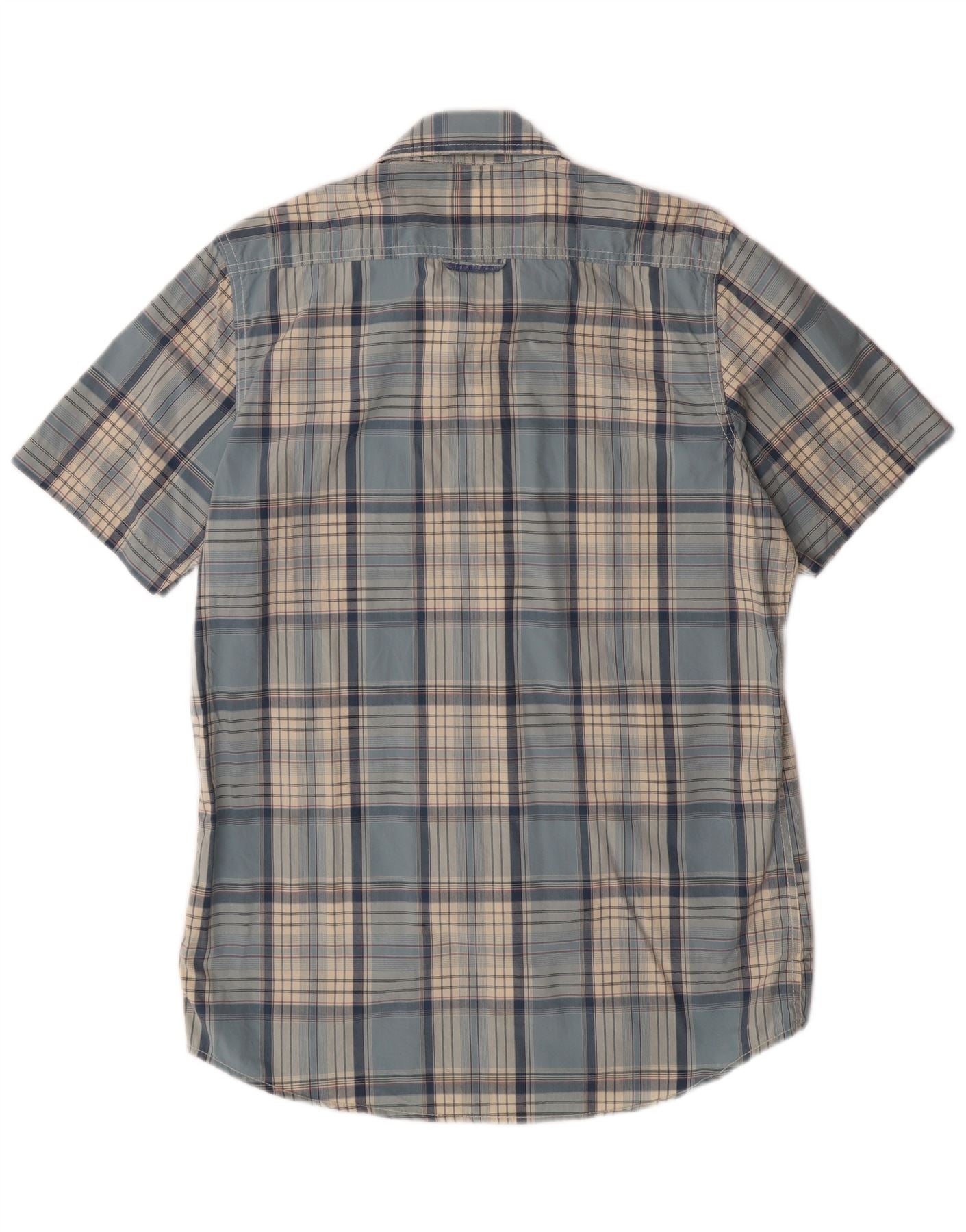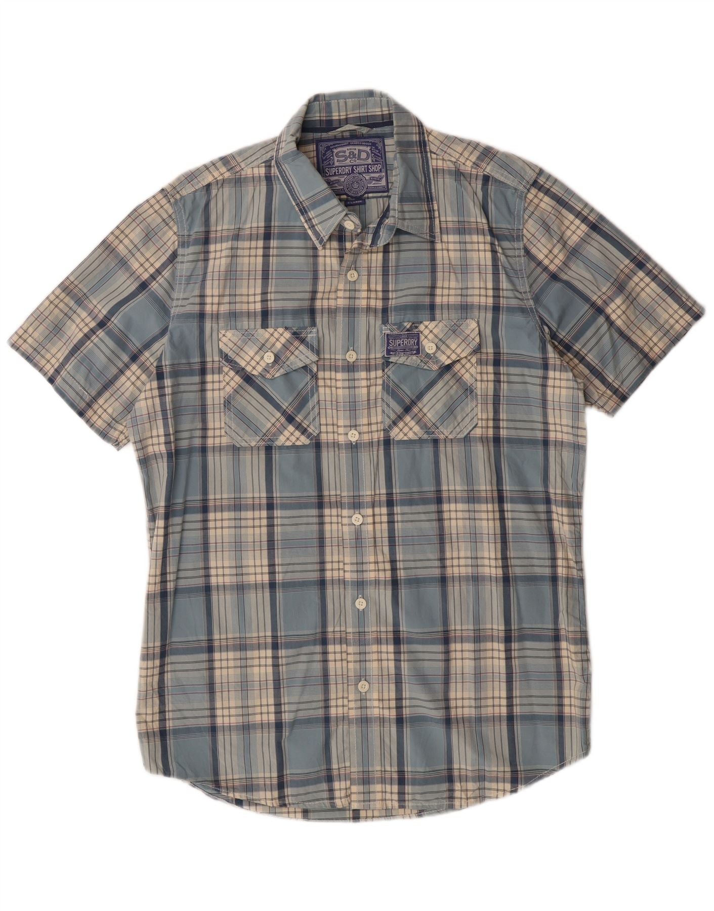 SUPERDRY Męska koszula z krótkim rękawem XL, niebieska kratka, bawełniana
