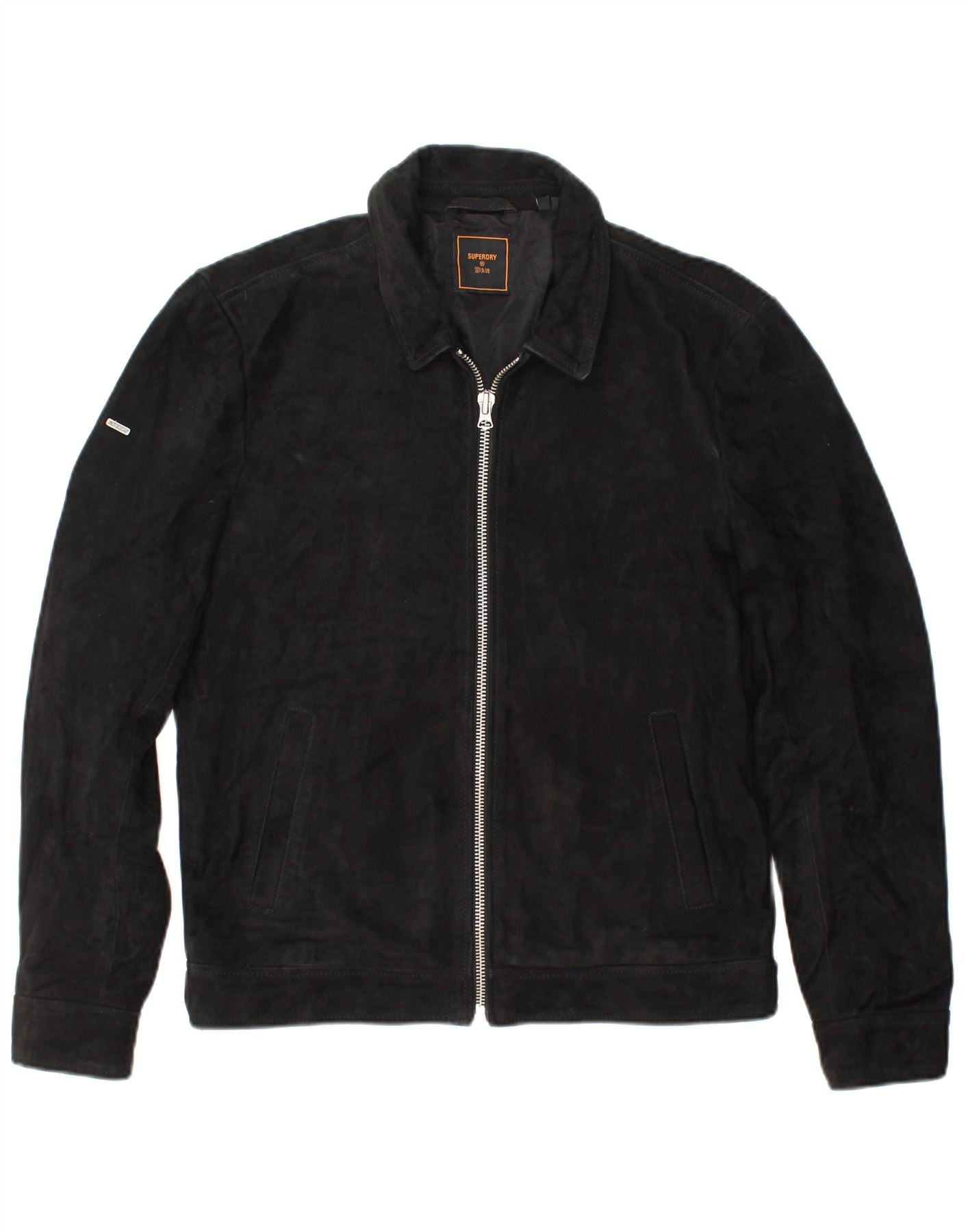 SUPERDRY Męska zamszowa kurtka UK 36 Mała czarna skóra