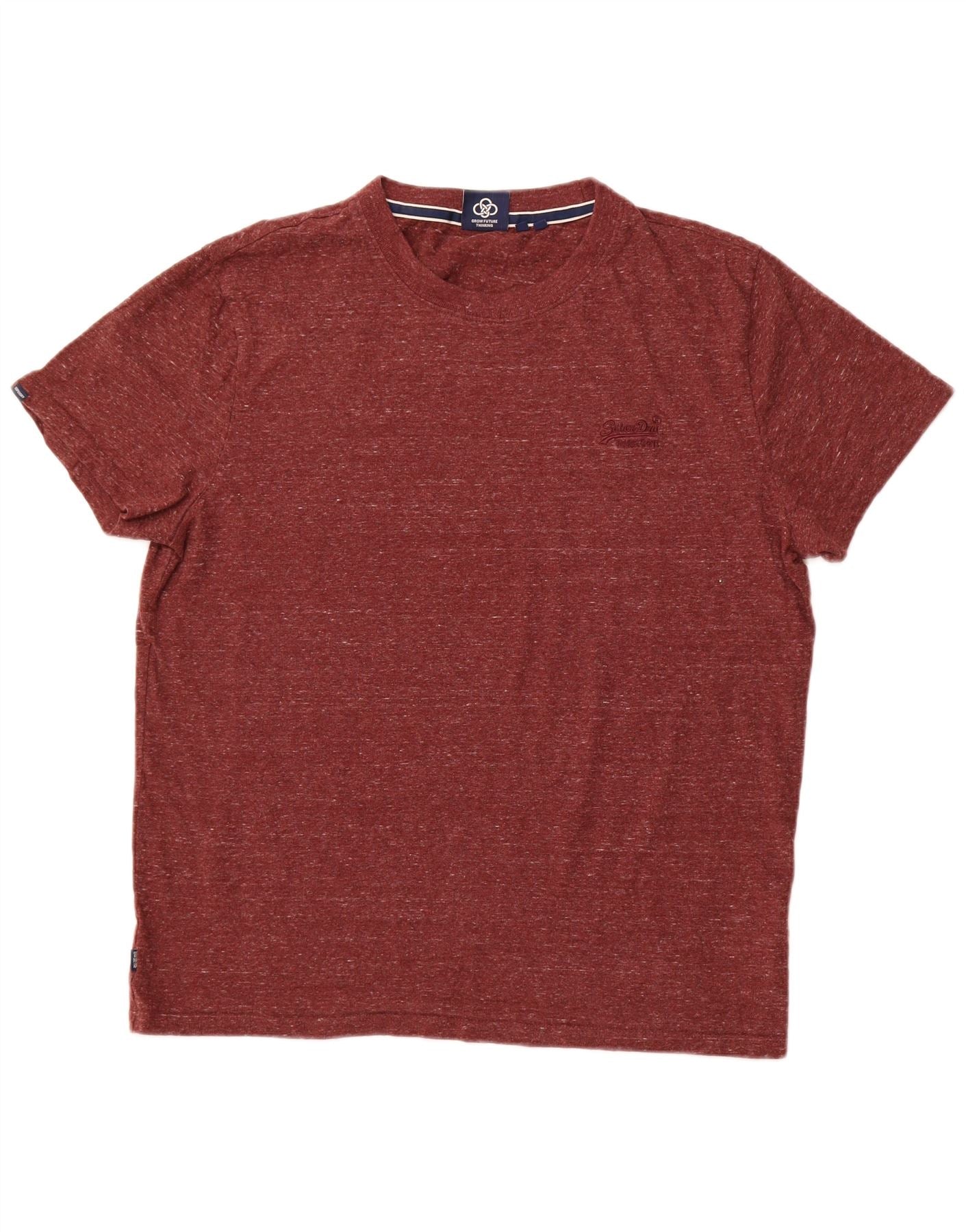SUPERDRY Męski T-shirt Top 2XL Bordowa bawełna z plamkami