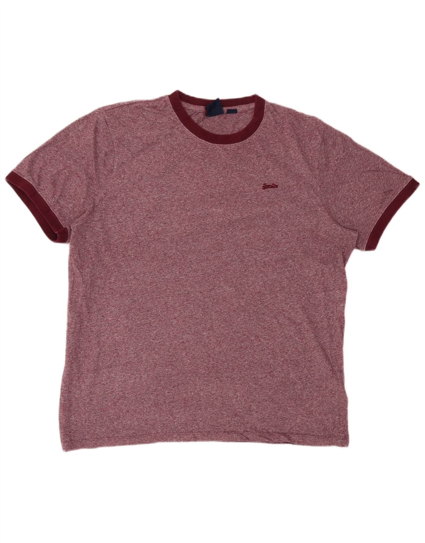 SUPERDRY Męski T-shirt Top 2XL Bordowa bawełna z plamkami