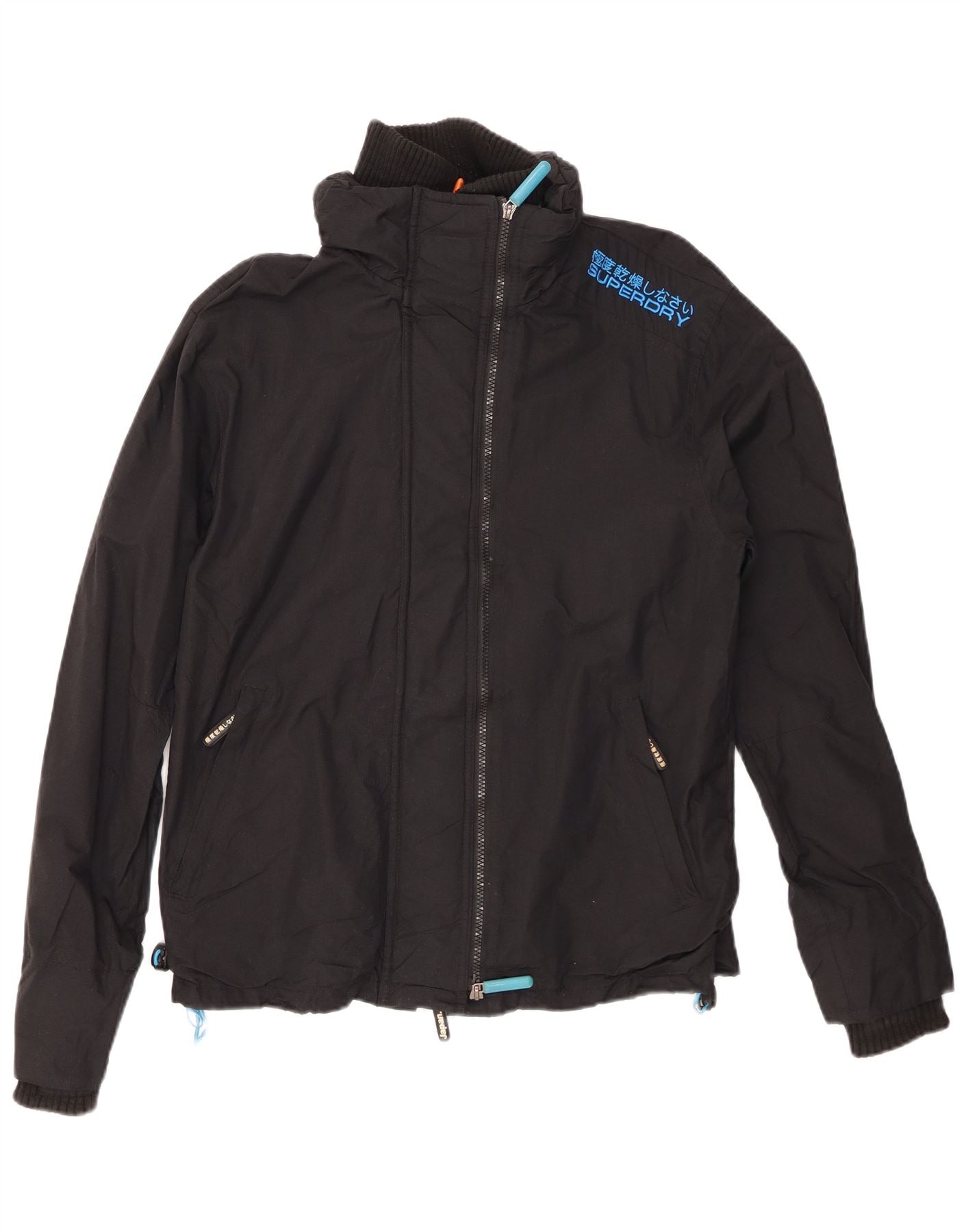 SUPERDRY Męska kurtka przeciwdeszczowa The Windcheater UK 40, duża, czarna nylonowa