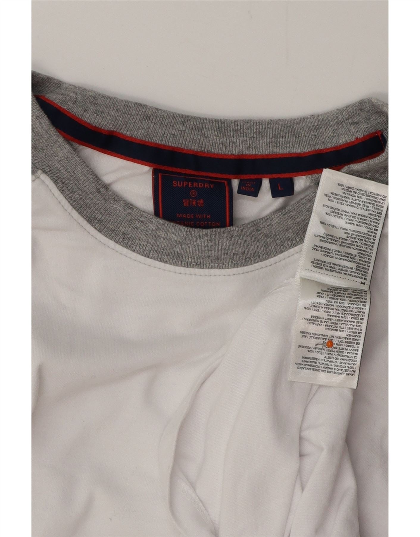 SUPERDRY Męski top z długim rękawem, duży, biały, bawełniany w bloki kolorów