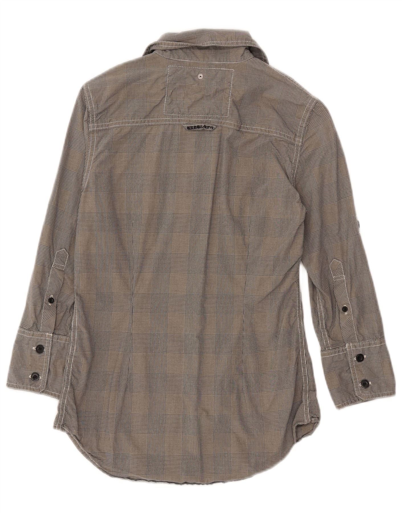 Damska koszula z rękawem 3/4 Superdry, UK 10, mała, szara, bawełniana w pepitkę