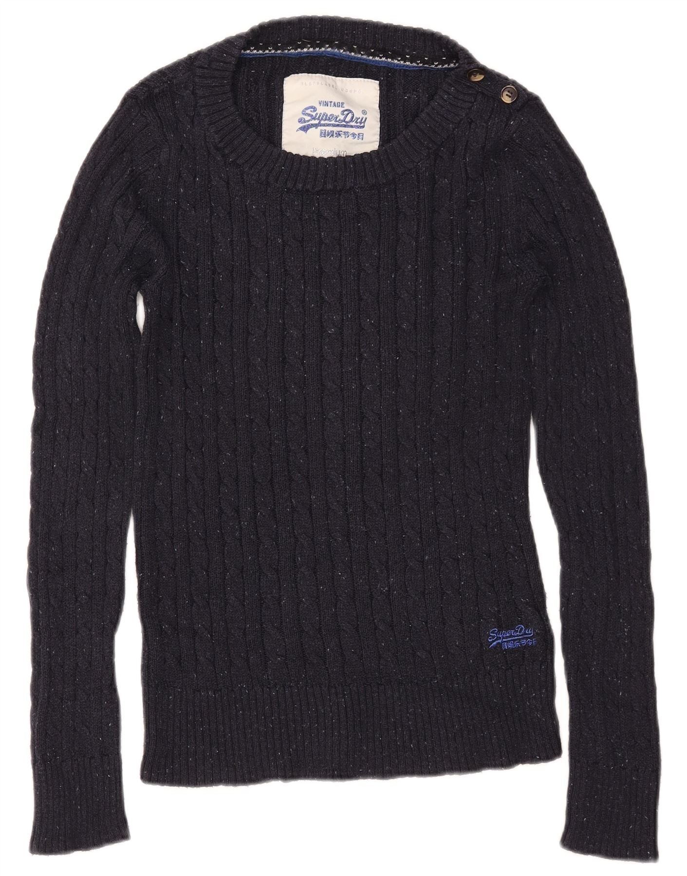 SUPERDRY Damski sweter z dekoltem w łódkę UK 12 Średni granatowy, bawełniany