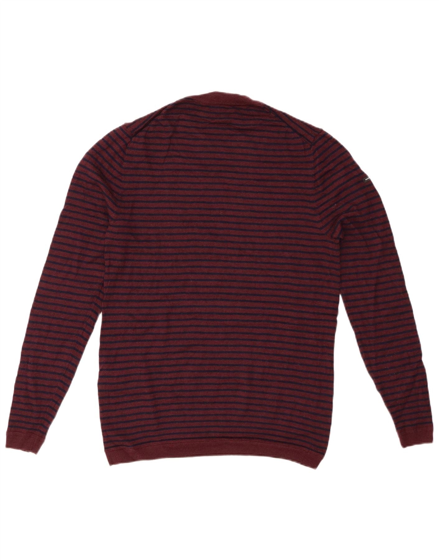 SUPERDRY Damski sweter z okrągłym dekoltem UK 14, duże, bordowe paski