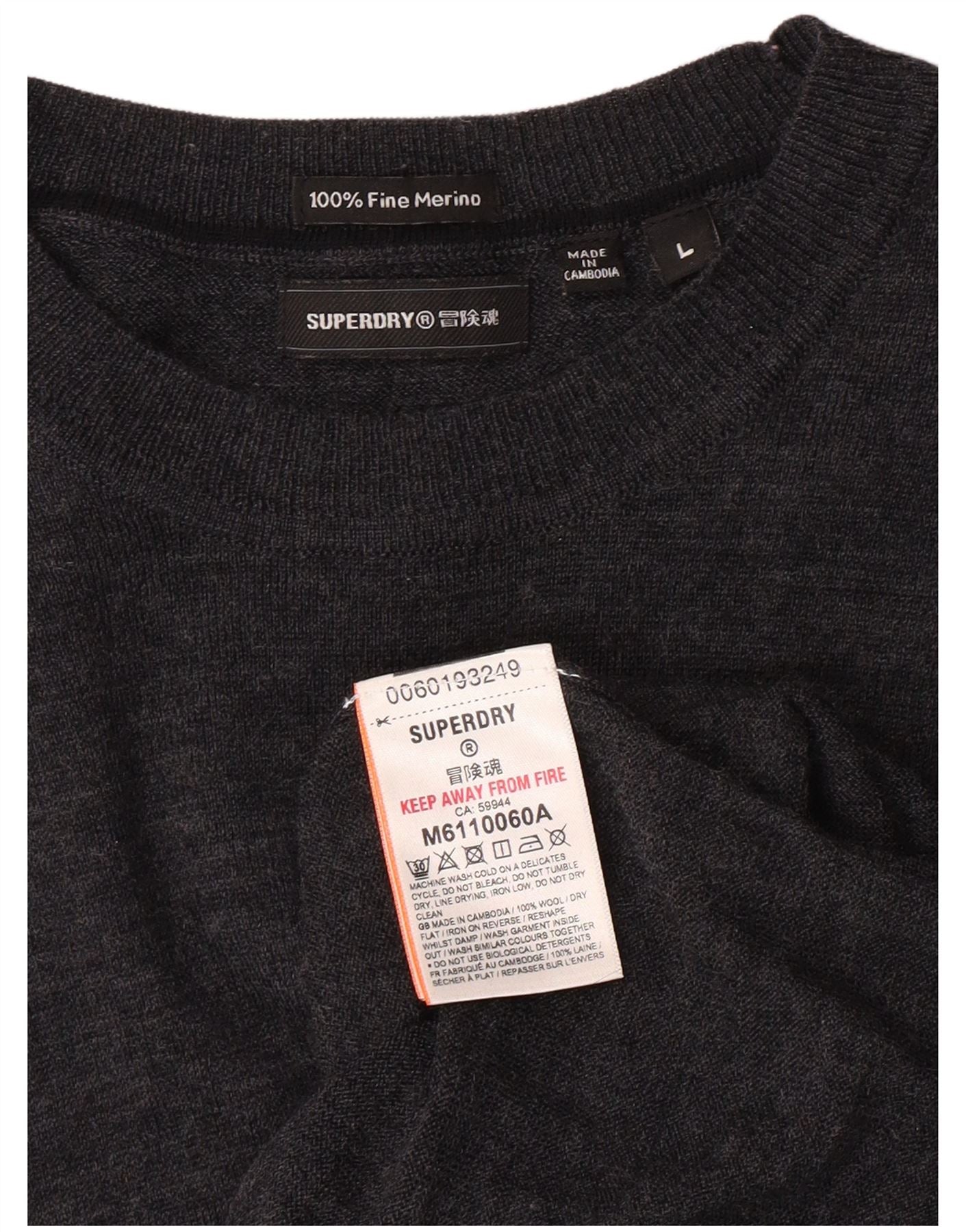 SUPERDRY Damski sweter z okrągłym dekoltem UK 14, duży, szary, wełna merynosów