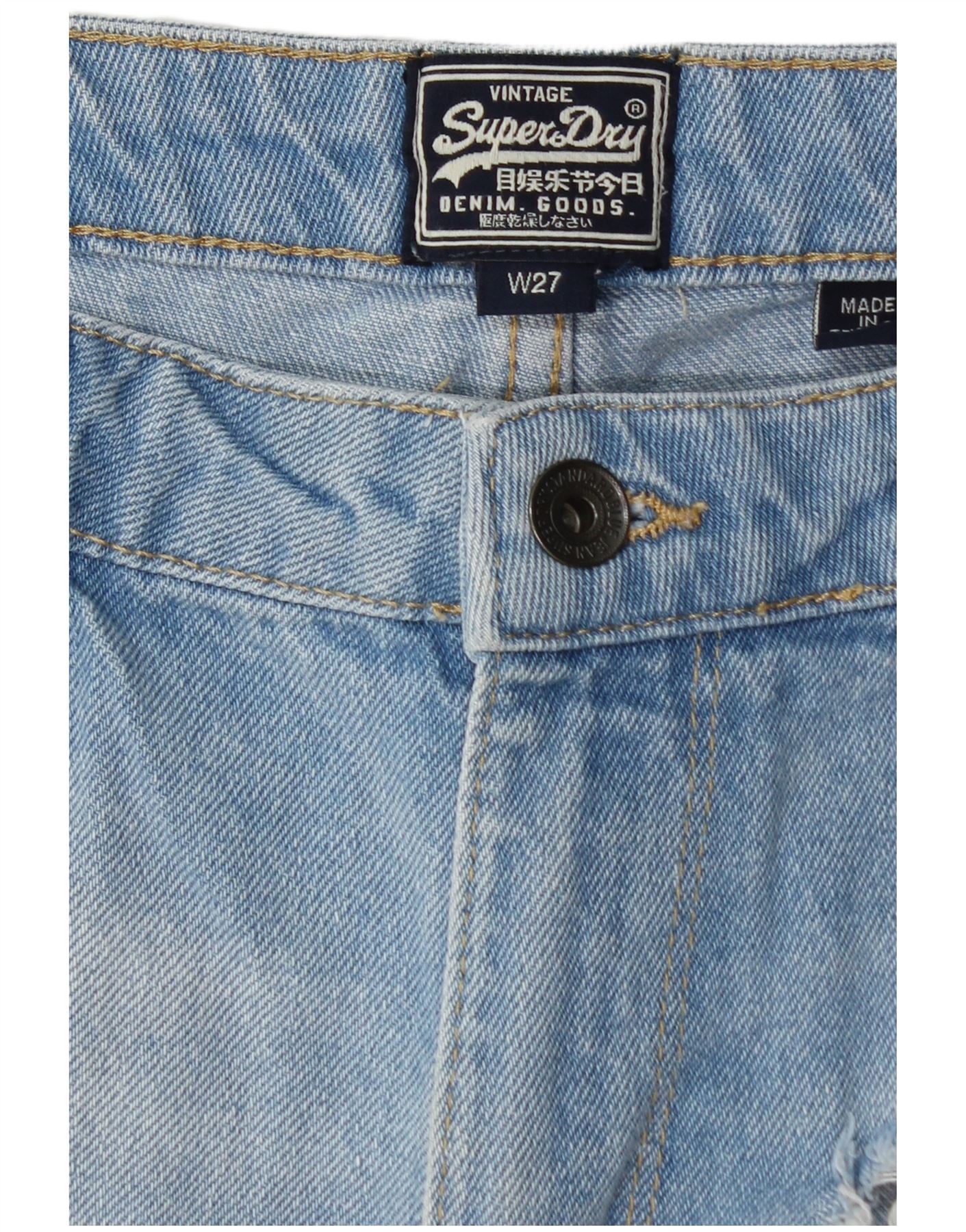 SUPERDRY Womens Distressed Graphic Denim Shorts W27 Small Blue Cotton