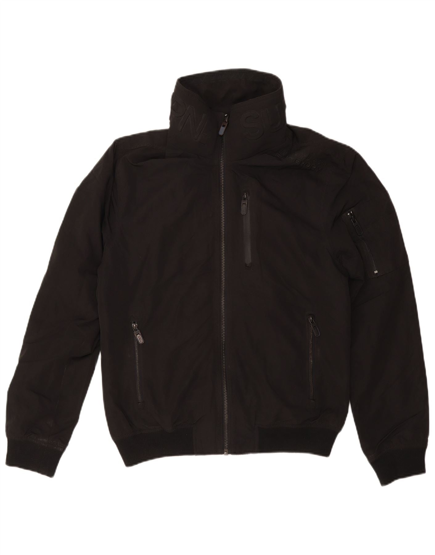 Damska kurtka bomber SUPERDRY z grafiką UK 18 XL, czarny poliester