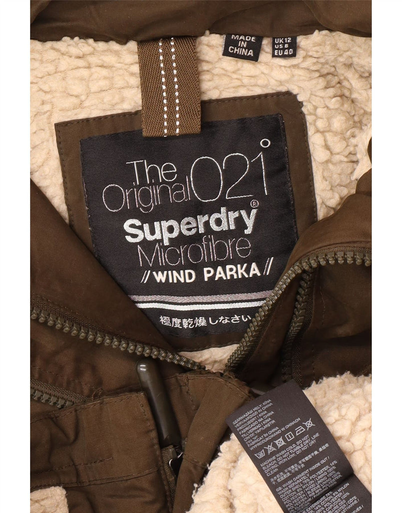 Damska kurtka wiatrówka z kapturem SUPERDRY, UK 12, średni khaki