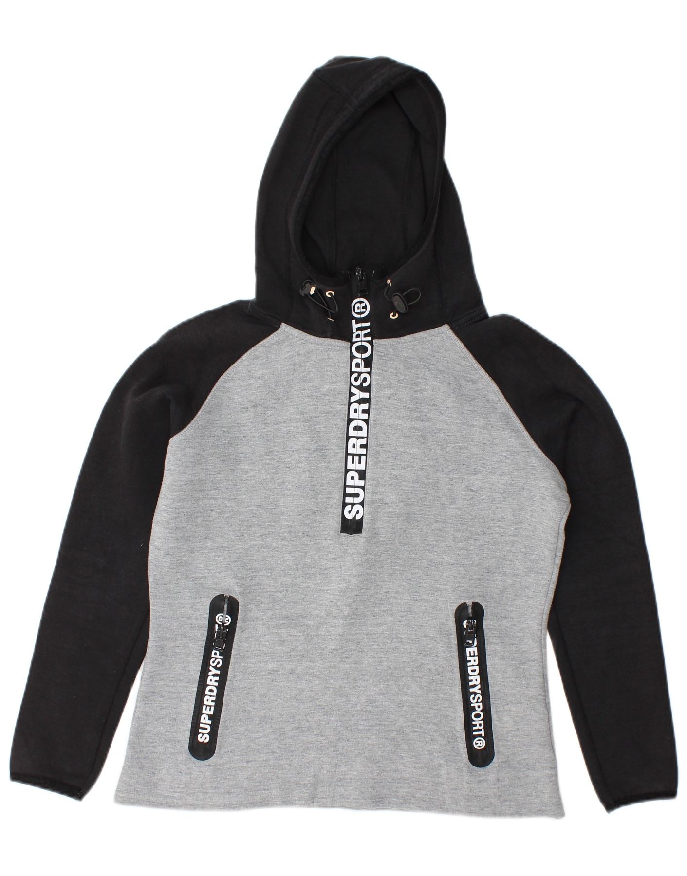 Damski sweter z kapturem SUPERDRY z grafiką UK 14, średni szary, blok kolorów